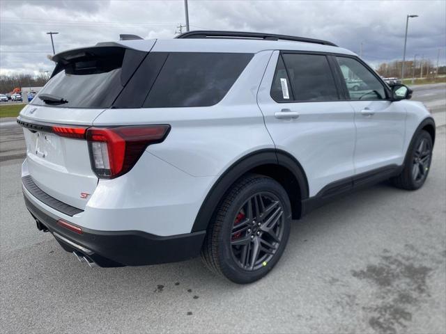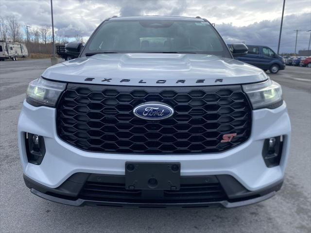 This <b>New 2026 Ford Explorer ST</b> has a Space White exterior and an Onyx interior color. 12 miles. Stock Number FD262587. You can connect with us by calling 315-509-9386. <h4 class=vc_build_package_name>Equipment Group 400A Standard Package</h4><ul class=vc_build_package_item_list></ul> <h4 class=vc_build_feature_name>Convenience</h4><ul class=vc_build_feature_item_list><li> GPS linked cruise control - Set it and forget it. Road trips used to be stressful until GPS linked cruise control set the pace. Simply set the desired speed and the system uses GPS navigation data to maintain that speed without driver intervention - including slowing down for curves and anticipating hills. This can help minimize driver fatigue and improve overall fuel economy. Meet your ultimate co-pilot; GPS linked cruise control.</li><li> Unresponsive driver assistant - a reaction to inaction. Maybe you fell asleep. Maybe you lost consciousness. No matter how it happens Unresponsive driver assistant works to help lessen the danger when it does. It detects prolonged driver unresponsiveness automatically bringing the vehicle to a stop and turning on the hazard lights. If equipped emergency services will also be contacted. Unresponsive driver assistant is safety that never sleeps.</li></ul><h4 class=vc_build_feature_name>Safety and Security</h4><ul class=vc_build_feature_item_list><li> Pedestrian impact prevention - An extra step toward safety. Pedestrians don't always stop look and listen but with Pedestrian Impact Prevention your vehicle is equipped to better see them and avoid them. This system constantly monitors the road ahead to identify and track pedestrians. It projects that image to an interior display screen AND should an impact become likely Pedestrian impact prevention takes steps to avoid a collision.</li></ul><h4 class=vc_build_feature_name>Technology and Telematics</h4><ul class=vc_build_feature_item_list><li> Apple CarPlay/Android Auto smart device wireless mirroring</li><li> Mobile hotspot - WiFi on the fly. Connect your devices to the Internet through your vehicle's private mobile hotspot and take the internet wherever your journey takes you without eating up your data allowance. Find the hotspot with mobile hotspot.</li></ul> Come on in to <b>Bob Johnson Ford Pulaski</b> today at <b>84 Caprara Drive Pulaski NY 13142</b> or call <b>315-509-9386</b> to schedule a test drive!