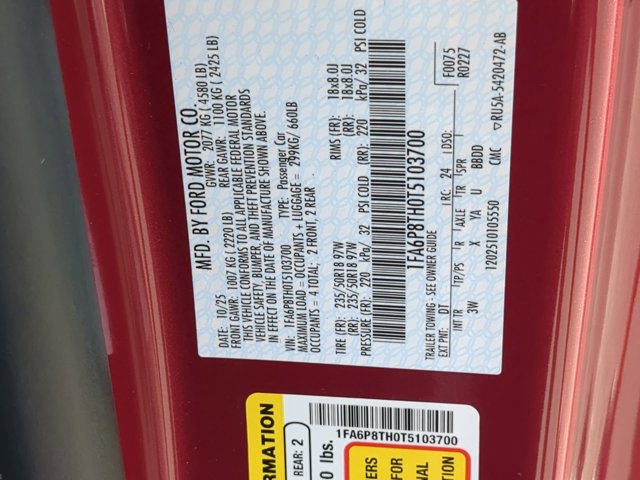 Molten Magenta Metallic Tinted Clearcoat 2026 Ford Mustang EcoBoost Premium In-Transit RWD 10-Speed Automatic EcoBoost 2.3L I4 GTDi DOHC Turbocharged VCT 4-Wheel Disc Brakes, ABS brakes, Air Conditioning, Alloy wheels, AM/FM Stereo, Auto High-beam Headlights, Automatic temperature control, Brake assist, Bumpers: body-color, Compass, Delay-off headlights, Driver door bin, Driver vanity mirror, Dual front impact airbags, Dual front side impact airbags, Electronic Stability Control, Emergency communication system: 911 Assist, Exterior Parking Camera Rear, Four wheel independent suspension, Front anti-roll bar, Front Bucket Seats, Front Center Armrest, Front dual zone A/C, Front reading lights, Fully automatic headlights, Illuminated entry, Knee airbag, Leather Shift Knob, Low tire pressure warning, Occupant sensing airbag, Outside temperature display, Overhead airbag, Overhead console, Panic alarm, Passenger door bin, Passenger vanity mirror, Power door mirrors, Power steering, Power windows, Radio data system, Rain sensing wipers, Rear anti-roll bar, Rear Parking Sensors, Rear window defroster, Remote keyless entry, Speed control, Speed-sensing steering, Speed-Sensitive Wipers, Split folding rear seat, Sport steering wheel, Steering wheel mounted audio controls, SYNC 4, Tachometer, Telescoping steering wheel, Tilt steering wheel, Traction control, Trip computer, Variably intermittent wipers, Voltmeter, Wedge Decklid Spoiler, Wheels: 18 x 8 Painted Shadow Silver Cast Alum.Recent Arrival! 21/32 City/Highway MPGNobody beats a Veterans Ford deal!! ** Contactless Purchase**, ** Free Home Drop-off **, ** Free Test Drive at Home **, ** Private Dealership Appointments **, ** Virtual Appointments ** , ** Custom Online Financing **.