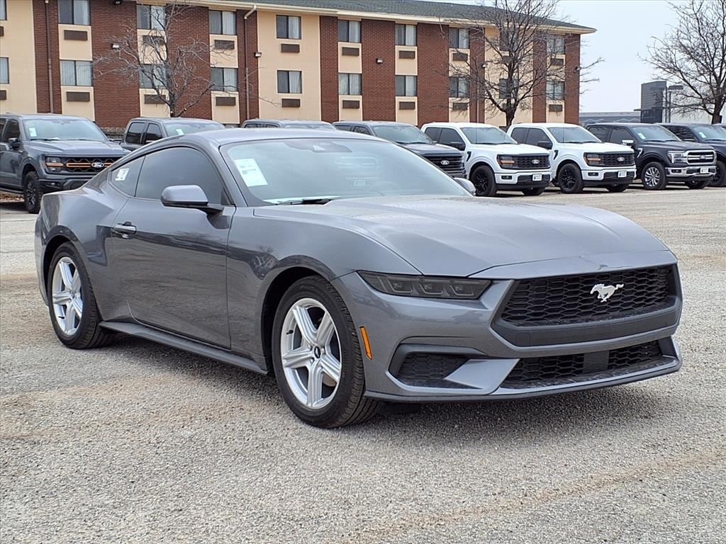 2026 Ford Mustang EcoBoost Gray Metallic RWD 4-Wheel Disc Brakes, 6 Speakers, ABS brakes, Air Conditioning, AM/FM Stereo, Auto High-beam Headlights, Automatic temperature control, Brake assist, Cloth Bucket Seats, Delay-off headlights, Dual front impact airbags, Dual front side impact airbags, Electronic Stability Control, Emergency communication system: 911 Assist, Equipment Group 100A Standard Package, Exterior Parking Camera Rear, Four wheel independent suspension, Front anti-roll bar, Front dual zone A/C, Fully automatic headlights, Knee airbag, Low tire pressure warning, Occupant sensing airbag, Overhead airbag, Panic alarm, Power steering, Power windows, Rear anti-roll bar, Rear Parking Sensors, Rear window defroster, Remote keyless entry, Speed-sensing steering, Steering wheel mounted audio controls, SYNC 4, Traction control, Wheels: 18' x 8' Painted Shadow Silver Cast Aluminum. EcoBoost 2.3L I4 GTDi DOHC Turbocharged VCT 10-Speed Automatic Grapevine Ford Lincoln proudly serving the following communities. Grapevine, Southlake, Flower Mound, Coppell, Colleyville, Dallas, Ft Worth, Lewisville, Keller, Carrollton, The Colony, Frisco, Plano, Euless. We also serve customers in Argyle, Denton, Trophy Club, Northlake, Little Elm, Sanger, Murphy, Mesquite, DeSoto, Addison, Farmers Branch, University Park, Highland Park, Duncanville, Princeton, Prosper, Allen, Celina, and Farmersville. Some other cities include Fairview, Garland, Lucas, Irving, and Keller. We're right by DFW AIRPORT! Price includes: $500 - Retail Customer Cash