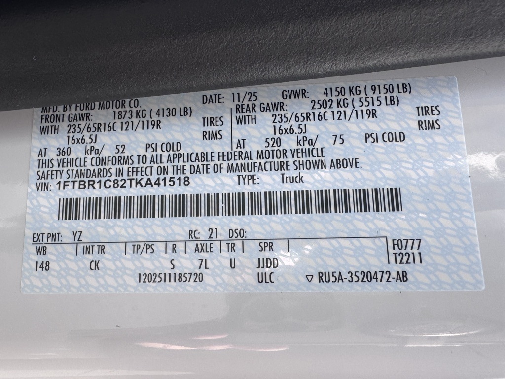 Oxford White 2026 Ford Transit-250 3.5L V6 Flex Fuel 10-Speed Automatic with OverdriveWell equipped with: Exterior Upgrade Package (Black High-Intensity Discharge (HID) Headlamps, Front Fog Lamps, and Wiper Activated Headlamps), Ford Connectivity Package (1-Year Included), Order Code 101A (AM/FM Stereo, Dark Palazzo Gray Vinyl Bucket Seats, SYNC 4, and Vinyl Front Bucket Seats), 253-Degree Rear Door Opening, 4 Speakers, 4-Wheel Disc Brakes, ABS brakes, Air Conditioning, AM/FM radio, Apple CarPlay/Android Auto, Auto High-beam Headlights, Brake assist, Cloth Front Bucket Seats, Delay-off headlights, Driver door bin, Driver's Seat Mounted Armrest, Dual front impact airbags, Dual front side impact airbags, Electronic Stability Control, Emergency communication system: 911 Assist, Exterior Parking Camera Rear, Fixed Rr Cargo Door & 2nd Row Passenger-Side Glass, Front anti-roll bar, Front Bucket Seats, Front License Plate Bracket, Front reading lights, Front wheel independent suspension, Fully automatic headlights, Illuminated entry, Low tire pressure warning, Navigation system: Connected Navigation, Occupant sensing airbag, Overhead airbag, Panic alarm, Passenger cancellable airbag, Passenger door bin, Passenger-Side B-Pillar Assist Handle, Power door mirrors, Power steering, Power windows, Privacy Glass, Rear-Window Defroster, Rearview Mirror, Remote keyless entry, Speed control, Steering wheel mounted audio controls, Tachometer, Telescoping steering wheel, Tilt steering wheel, Traction control, and Variably intermittent wipers.3 YEARS OF FREE MAINTENANCE INCLUDED AT OUR DEALERSHIP. 3 DAY EXCHANGE POLICY. 5 DAY BEST VALUE GUARANTEE. NITROGEN FILL AND EXTERIOR PAINT AND INTERIOR PROTECTION INCLUDED. 2 LOCATIONS WITHIN 5 MILES AND OVER 300 USED AND 200 NEW VEHICLES TO SERVE YOU BETTER! GREAT PRICES AND TONS OF CLEAN TRADE INS. OWNED AND OPERATED BY THE STEARNS FAMILY FOR OVER 50 YEARS. WE LOOK FORWARD TO SEEING YOU!!