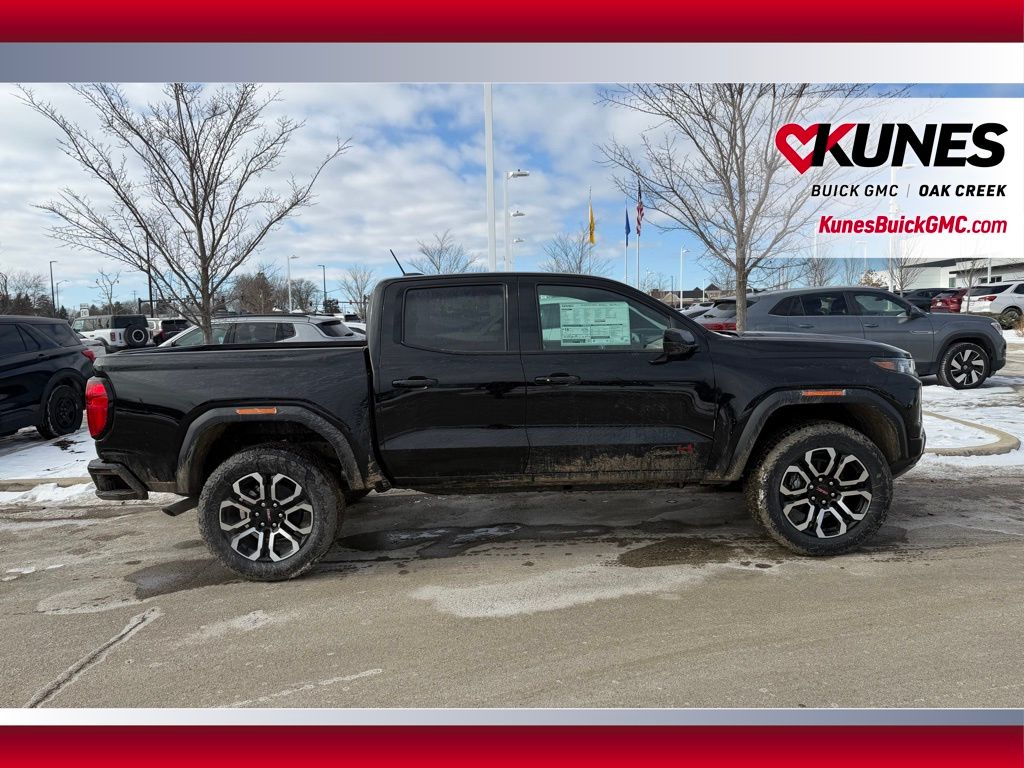 Onyx Black 2026 GMC Canyon AT4 4WD 8-Speed Automatic 2.7L I4 Turbocharged DOHC 16V LEV3-SULEV30 310hp 4WD, 120-Volt Bed Mounted Power Outlet, 2 Rear USB Ports in Center Console (Charge-Only), 8-Way Power Driver Seat Adjuster, Automatic Emergency Braking, Black Badges, Black GMC Emblems, Blind Zone Steering Assist with Trailering, Canyon Pro Safety, Canyon Safety Plus Package, Driver and Front Passenger Illuminated Visors, Dual-Zone Automatic Climate Control Air Conditioning, EZ-Lift and Lower Tailgate, Following Distance Indicator, Forward Collision Alert, Front LED Fog Lamps, Front Pedestrian and Bicyclist Braking, Heated Driver and Front Passenger Seats, Inside Rear-View Auto-Dimming Mirror, IntelliBeam Automatic High Beam on/Off, Interior Overhead Courtesy Light with Dual Reading Lamp, Lane Keep Assist with Lane Departure Warning, MultiStow Tailgate Storage Compartment, Navigation System, Nightfall Essentials Package, Power Driver Lumbar Control Seat Adjuster, Preferred Equipment Group 4SG, Rear Cross Traffic Braking, Rear of Console 120-Volt Power Outlet, Remote Vehicle Starter System, Tailgate Keyed Cylinder Lock, Til and Telescopic Manual Steering Column, Ultrasonic Rear Park Assist, Wheels: 20 x 9 Machined Faced Aluminum.Also included with every new vehicle we sell: LIFETIME NO FEAR WARRANTY, FIRST OIL CHANGE, and AT HOME COURTESY DELIVERY! Call us for full details! We pride ourselves on honesty and integrity, but please note that mistakes or misprints due to human error are possible. Find out why our dealerships have won DealerRater.com DEALER OF THE YEAR a whopping 10 TIMES! Call, email, or live chat with one of our friendly sales professionals now to schedule your test drive! Prices shown do not include tax, title, registration and $599 service fees.