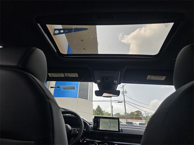Canyon River Blue 2026 Honda CR-V Hybrid Sport Touring 2.0L I4 DOHC 16V, 12 Speakers, 4-Wheel Disc Brakes, ABS brakes, Adaptive Cruise Control: Adaptive Cruise Control (ACC) with Low-Speed Follow, Air Conditioning, Alloy wheels, Apple CarPlay/Android Auto, Auto High-beam Headlights, Auto-dimming Rear-View mirror, Automatic temperature control, Blind Spot Information (BSI) System warning, Bose Premium Sound System, Brake assist, Bumpers: body-color, Compass, Delay-off headlights, Driver door bin, Driver vanity mirror, Dual front impact airbags, Dual front side impact airbags, Electronic Stability Control, Exterior Parking Camera Rear, Four wheel independent suspension, Front anti-roll bar, Front Bucket Seats, Front Center Armrest, Front dual zone A/C, Front reading lights, Fully automatic headlights, Heated door mirrors, Heated Front Bucket Seats, Heated front seats, Heated steering wheel, Illuminated entry, Knee airbag, Leather Seat Trim, Leather Shift Knob, Leather steering wheel, Low tire pressure warning, Memory seat, Navigation system: Google Maps, Occupant sensing airbag, Outside temperature display, Overhead airbag, Overhead console, Panic alarm, Passenger door bin, Passenger vanity mirror, Power door mirrors, Power driver seat, Power Liftgate, Power moonroof, Power passenger seat, Power steering, Power windows, Radio data system, Rain sensing wipers, Rear anti-roll bar, Rear reading lights, Rear seat center armrest, Rear side impact airbag, Rear window defroster, Rear window wiper, Remote keyless entry, Security system, Speed control, Speed-sensing steering, Speed-Sensitive Wipers, Split folding rear seat, Spoiler, Steering wheel mounted audio controls, Telescoping steering wheel, Tilt steering wheel, Traction control, Trip computer, Turn signal indicator mirrors, Variably intermittent wipers, and Wheels: 19 Berlina Black.
