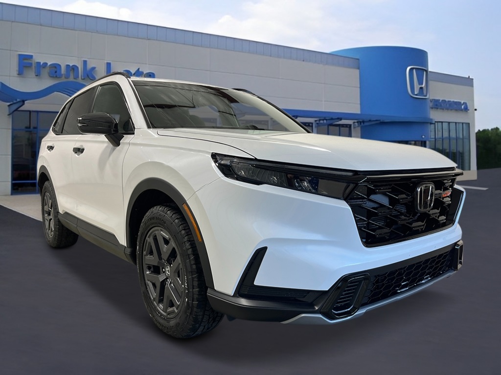 2026 Honda CR-V Hybrid TrailSport 4D Sport Utility 2.0L I4 DOHC 16V eCVT Platinum White Pearl CR-V Hybrid TrailSport, 4D Sport Utility, 2.0L I4 DOHC 16V, eCVT, AWD, Platinum White Pearl, Black w/Cloth Seat Trim, 4-Wheel Disc Brakes, 8 Speakers, ABS brakes, Adaptive Cruise Control: Adaptive Cruise Control (ACC) with Low-Speed Follow, Air Conditioning, Alloy wheels, Apple CarPlay/Android Auto, Auto High-beam Headlights, Automatic temperature control, Blind Spot Information (BSI) System warning, Brake assist, Bumpers: body-color, Cloth Seat Trim, Compass, Delay-off headlights, Driver door bin, Driver vanity mirror, Dual front impact airbags, Dual front side impact airbags, Electronic Stability Control, Exterior Parking Camera Rear, Four wheel independent suspension, Front anti-roll bar, Front Bucket Seats, Front Center Armrest, Front dual zone A/C, Front reading lights, Fully automatic headlights, Heated door mirrors, Heated Front Bucket Seats, Heated front seats, Heated steering wheel, Illuminated entry, Knee airbag, Leather Shift Knob, Leather steering wheel, Low tire pressure warning, Occupant sensing airbag, Outside temperature display, Overhead airbag, Overhead console, Panic alarm, Passenger door bin, Passenger vanity mirror, Power door mirrors, Power driver seat, Power moonroof, Power steering, Power windows, Radio data system, Radio: 320-Watt AM/FM Audio System, Rear anti-roll bar, Rear reading lights, Rear seat center armrest, Rear side impact airbag, Rear window defroster, Rear window wiper, Remote keyless entry, Security system, Speed control, Speed-sensing steering, Speed-Sensitive Wipers, Split folding rear seat, Spoiler, Steering wheel mounted audio controls, Telescoping steering wheel, Tilt steering wheel, Traction control, Trip computer, Turn signal indicator mirrors, Variably intermittent wipers, Wheels: 18 Shark Gray, CR-V Hybrid TrailSport, 4D Sport Utility, 2.0L I4 DOHC 16V, eCVT, AWD, Platinum White Pearl, Black w/Cloth Seat Trim.