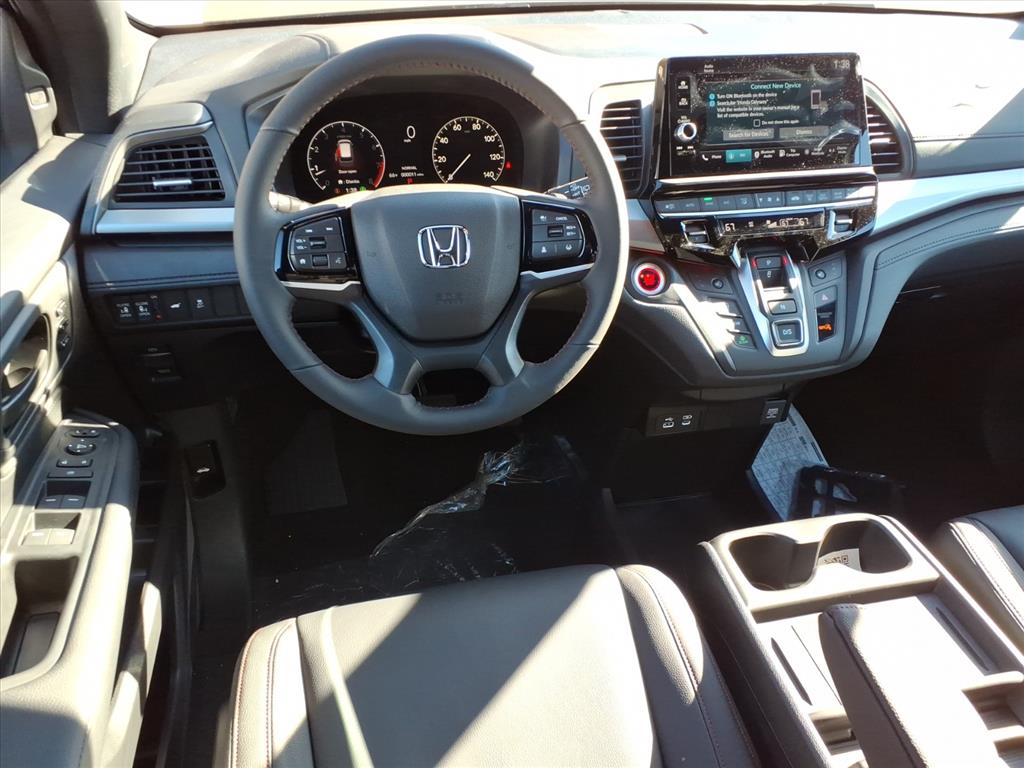 The Honda Mini Van Odyssey Sport-L of 2026 is a state-of-the-art motorcar. It is equipped with a 3.5 liter 6 cylinder engine that is fuel injected and has a crystal black exterior. Inside, it has a black interior with leather-trimmed seats and features such as a touch screen display, Bluetooth audio connection, blind spot sensor, and hill start assist. This vehicle is sure to turn heads on the road with its impressive performance and luxurious features. MPG is based on a mileage estimate applied to this vehicle when new. Actual mileage will vary.