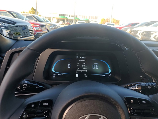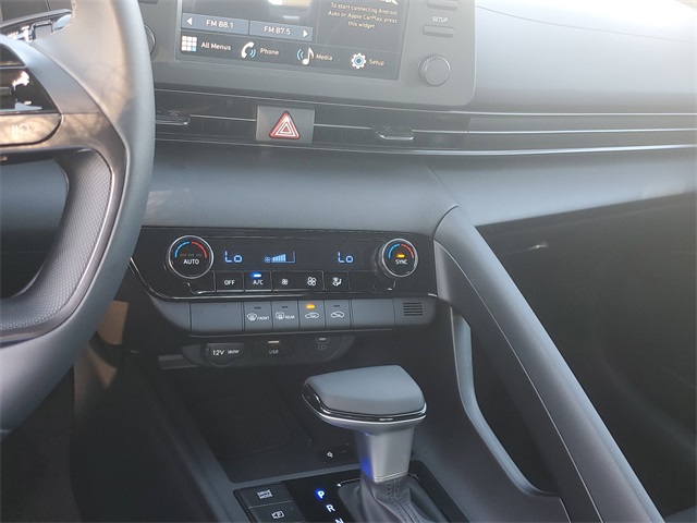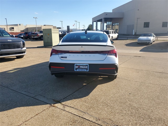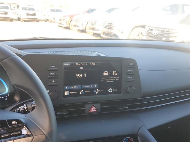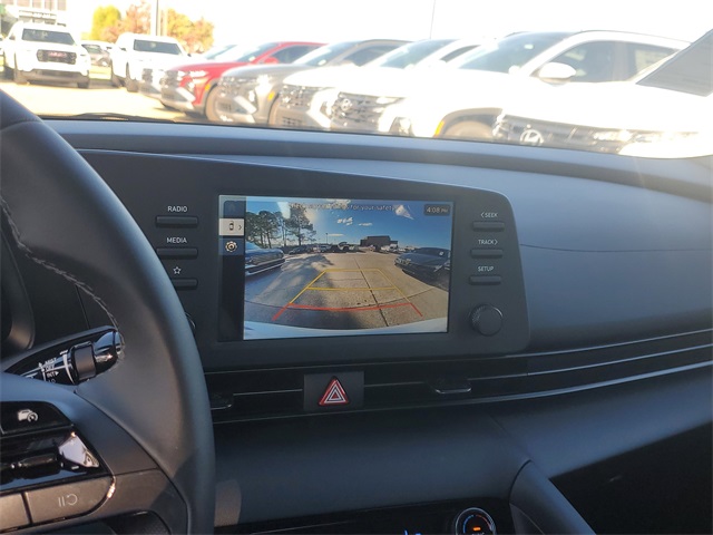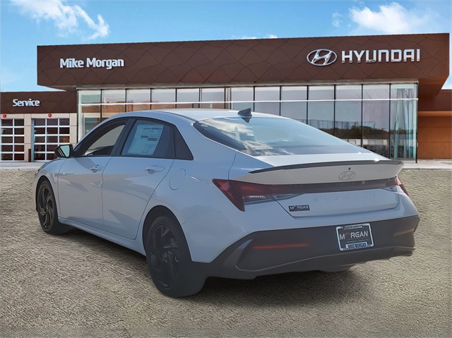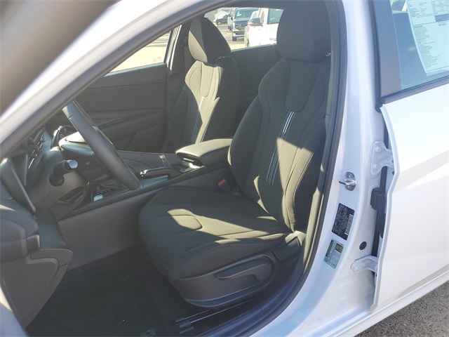 Serenity White 2026 Hyundai Elantra SEL Sport FWD CVT I430/39 City/Highway MPGOption Group 01, 4-Wheel Disc Brakes, 6 Speakers, ABS brakes, Air Conditioning, Alloy wheels, AM/FM radio, Apple CarPlay & Android Auto, Auto High-beam Headlights, Automatic temperature control, Brake assist, Bumpers: body-color, Delay-off headlights, Driver door bin, Driver vanity mirror, Dual front impact airbags, Dual front side impact airbags, Electronic Stability Control, Exterior Parking Camera Rear, Front anti-roll bar, Front Bucket Seats, Front Center Armrest, Front dual zone A/C, Front reading lights, Front wheel independent suspension, Fully automatic headlights, Illuminated entry, Low tire pressure warning, Occupant sensing airbag, Outside temperature display, Overhead airbag, Overhead console, Panic alarm, Passenger door bin, Passenger vanity mirror, Power door mirrors, Power steering, Power windows, Premium Cloth Seat Trim, Radio: AM/FM/HD Display Audio, Rear side impact airbag, Rear window defroster, Remote keyless entry, Security system, Speed control, Speed-sensing steering, Spoiler, Steering wheel mounted audio controls, Tachometer, Telescoping steering wheel, Tilt steering wheel, Traction control, Trip computer, Variably intermittent wipers, and Wheels: 17 x 7.0J Alloy Gloss Black w/Dark Finish.