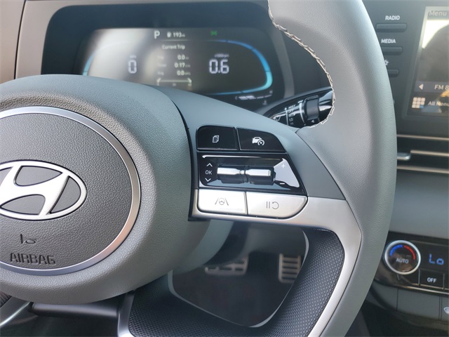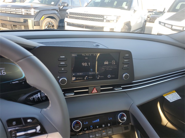 Ecotronic Gray 2026 Hyundai Elantra SEL Sport FWD CVT I430/39 City/Highway MPGOption Group 01, 4-Wheel Disc Brakes, 6 Speakers, ABS brakes, Air Conditioning, Alloy wheels, AM/FM radio, Apple CarPlay & Android Auto, Auto High-beam Headlights, Automatic temperature control, Brake assist, Bumpers: body-color, Delay-off headlights, Driver door bin, Driver vanity mirror, Dual front impact airbags, Dual front side impact airbags, Electronic Stability Control, Exterior Parking Camera Rear, Front anti-roll bar, Front Bucket Seats, Front Center Armrest, Front dual zone A/C, Front reading lights, Front wheel independent suspension, Fully automatic headlights, Illuminated entry, Low tire pressure warning, Occupant sensing airbag, Outside temperature display, Overhead airbag, Overhead console, Panic alarm, Passenger door bin, Passenger vanity mirror, Power door mirrors, Power steering, Power windows, Premium Cloth Seat Trim, Radio: AM/FM/HD Display Audio, Rear side impact airbag, Rear window defroster, Remote keyless entry, Security system, Speed control, Speed-sensing steering, Spoiler, Steering wheel mounted audio controls, Tachometer, Telescoping steering wheel, Tilt steering wheel, Traction control, Trip computer, Variably intermittent wipers, and Wheels: 17 x 7.0J Alloy Gloss Black w/Dark Finish.