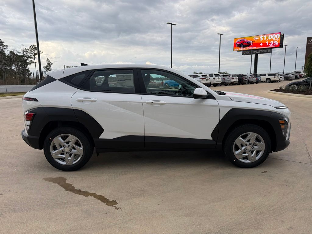 Atlas White 2026 Hyundai Kona SE 29/34 City/Highway MPGExclusively at Giles Free Lifetime Powertrain Warranty.