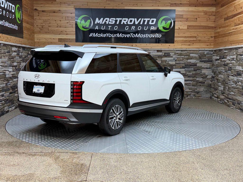 Creamy White Pearl 2026 Hyundai Palisade Hybrid SEL Premium 7 Passenger AWD 6-Speed Automatic 2.5L Turbocharged GDI 4-Cylinder Hybrid 2.5L Turbocharged GDI 4-Cylinder Hybrid. 29/30 City/Highway MPG Option Group 01, 2.5L Turbocharged GDI 4-Cylinder Hybrid, 100W Charging Cable, 3rd row seats: split-bench, 4-Wheel Disc Brakes, 8 Speakers, ABS brakes, Air Conditioning, Alloy wheels, AM/FM radio: SiriusXM, Apple CarPlay Android Auto, Audio memory, Auto High-beam Headlights, Auto-dimming door mirrors, Auto-dimming Rear-View mirror, Auto-leveling suspension, Automatic temperature control, Brake assist, Bumpers: body-color, Cargo Cover, Cargo Mat, Up Seatback, Cargo Net, Carpeted Floor Mats, Compass, Delay-off headlights, Driver door bin, Driver vanity mirror, Dual front impact airbags, Dual front side impact airbags, Electronic Stability Control, Emergency communication system: None, Exterior Parking Camera Rear, First Aid Kit, Four wheel independent suspension, Front anti-roll bar, Front Bucket Seats, Front Center Armrest, Front dual zone A/C, Front reading lights, Fully automatic headlights, Garage door transmitter: HomeLink, H-Tex Leatherette Seat Trim, Heated and Ventilated Front Bucket Seats, Heated door mirrors, Heated front seats, Heated rear seats, Heated steering wheel, HVAC memory, Illuminated Door Sill Plates, Illuminated entry, Knee airbag, Leather steering wheel, Low tire pressure warning, Memory seat, Navigation System, Occupant sensing airbag, Outside temperature display, Overhead airbag, Overhead console, Panic alarm, Passenger door bin, Passenger vanity mirror, Power door mirrors, Power driver seat, Power Liftgate, Power moonroof, Power passenger seat, Power steering, Power windows, Radio data system, Radio: Infotainment Navigation System, Rear air conditioning, Rear anti-roll bar, Rear audio controls, Rear reading lights, Rear side impact airbag, Rear window defroster, Rear window wiper, Reclining 3rd row seat, Remote keyless entry, Roadside Assistance Kit, Security system, Speed control, Split folding rear seat, Spoiler, Steering wheel mounted audio controls, Tachometer, Telescoping steering wheel, Tilt steering wheel, Traction control, Trip computer, Turn signal indicator mirrors, Variably intermittent wipers, Ventilated front seats, Ventilated rear seats, and Wheels: 18' x 8.0J Alloy. Price includes: $500 - Hyundai HMF Dealer Choice : $500 discount and 5.39% APR for 24 months. $44.05 per $1000 financed. Available to well qualified buyers who finance through Hyundai Motor Finance. H704. Exp. 03/02/2026
