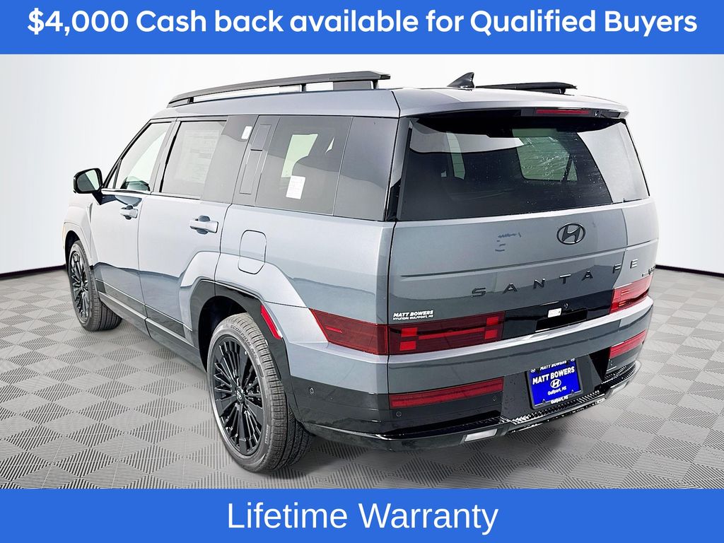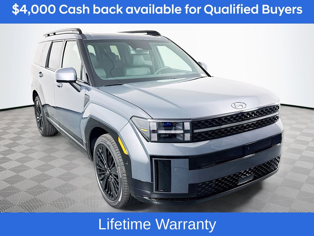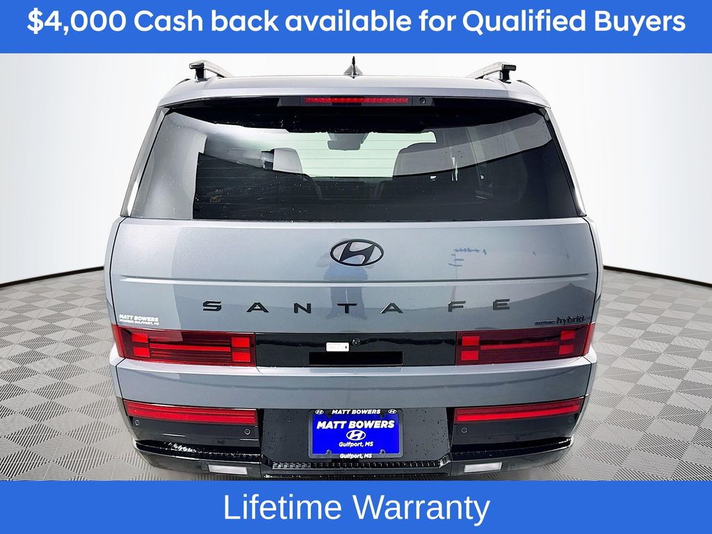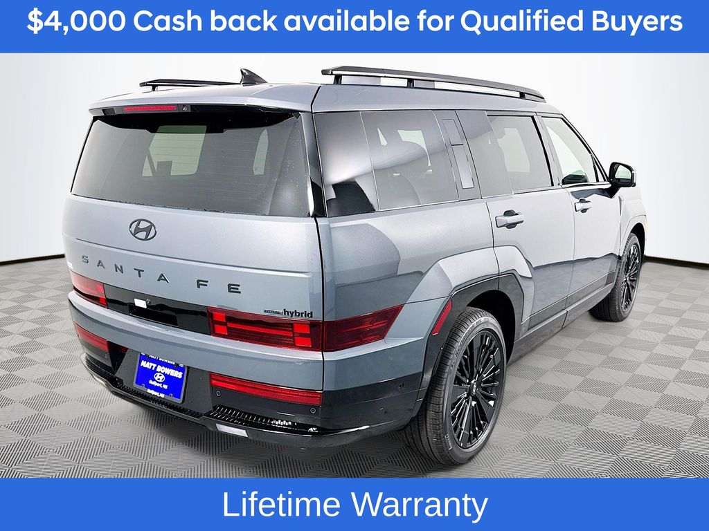 Ecotronic Gray 2026 Hyundai Santa Fe Hybrid Calligraphy AWD 6-Speed Automatic with Shiftronic I4Includes:Option Group 01, 12 Speakers, 3rd row seats: bench, 4-Wheel Disc Brakes, ABS brakes, Air Conditioning, All Season Fitted Liners, Alloy wheels, AM/FM radio: SiriusXM, Apple CarPlay & Android Auto, Auto High-beam Headlights, Auto-dimming Rear-View mirror, Automatic temperature control, Brake assist, Bumpers: body-color, Cargo Cover/Screen, Cargo Net, Carpeted Floor Mats, Delay-off headlights, Driver door bin, Driver vanity mirror, Dual front impact airbags, Dual front side impact airbags, Electronic Stability Control, Emergency communication system, Exterior Parking Camera Rear, First Aid Kit, Four wheel independent suspension, Front anti-roll bar, Front Bucket Seats, Front Center Armrest, Front dual zone A/C, Front reading lights, Fully automatic headlights, Garage door transmitter: HomeLink, Heads-Up Display, Heated and Ventilated Front Bucket Seats, Heated door mirrors, Heated front seats, Heated rear seats, Heated steering wheel, Illuminated entry, Knee airbag, Leather steering wheel, Low tire pressure warning, Memory seat, Navigation System, Occupant sensing airbag, Outside temperature display, Overhead airbag, Overhead console, Panic alarm, Passenger door bin, Passenger vanity mirror, Power door mirrors, Power driver seat, Power Liftgate, Power moonroof, Power passenger seat, Power steering, Power windows, Quilted Premium Nappa Leather Seat Trim, Radio: AM/FM/HD Bose Premium Audio System, Rain sensing wipers, Rear anti-roll bar, Rear side impact airbag, Rear window defroster, Rear window wiper, Remote keyless entry, Security system, Speed control, Speed-sensing steering, Split folding rear seat, Spoiler, Steering wheel mounted audio controls, Tachometer, Telescoping steering wheel, Tilt steering wheel, Traction control, Trip computer, Turn signal indicator mirrors, Variably intermittent wipers, Ventilated front seats, and Wheels: 20 x 8.5J Unique Dark Finish Alloy. Not all customers may qualify for all rebates listed, see dealer for details. Price includes: $4000 - Hyundai HMF Dealer Choice : $4000 discount and 5.39% APR for 24 months. $44.05 per $1000 financed. Available to well qualified buyers who finance through Hyundai Motor Finance. H704. Exp. 03/02/2026