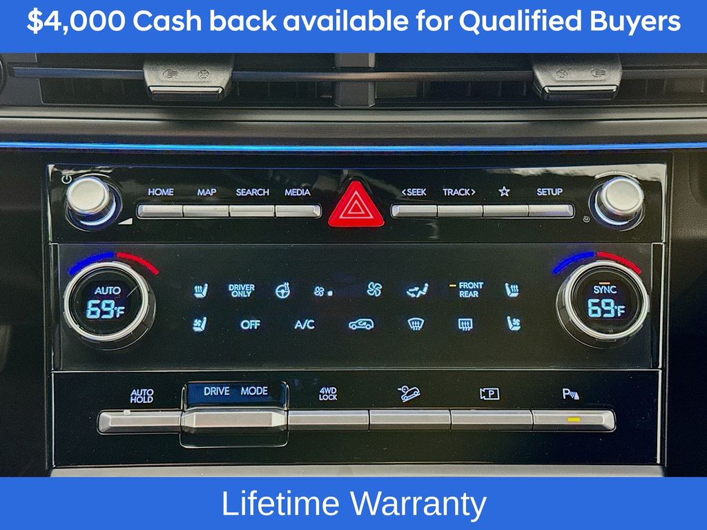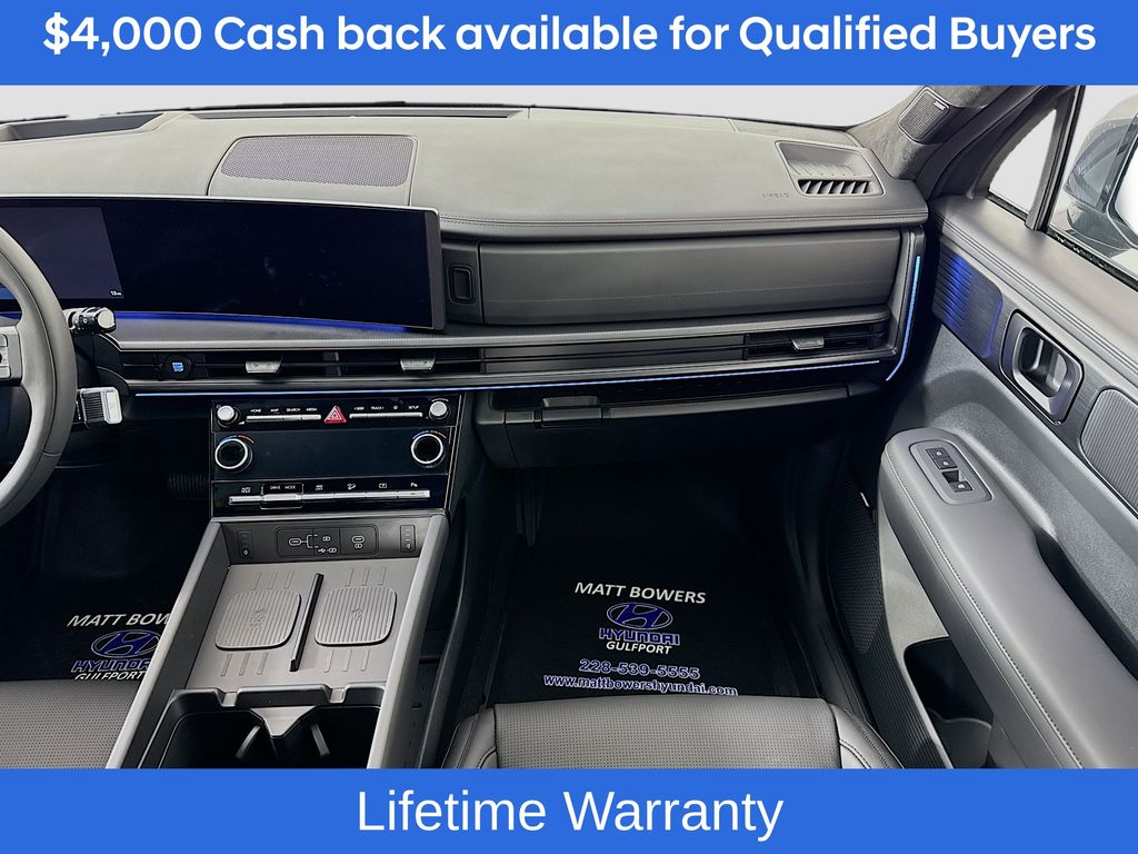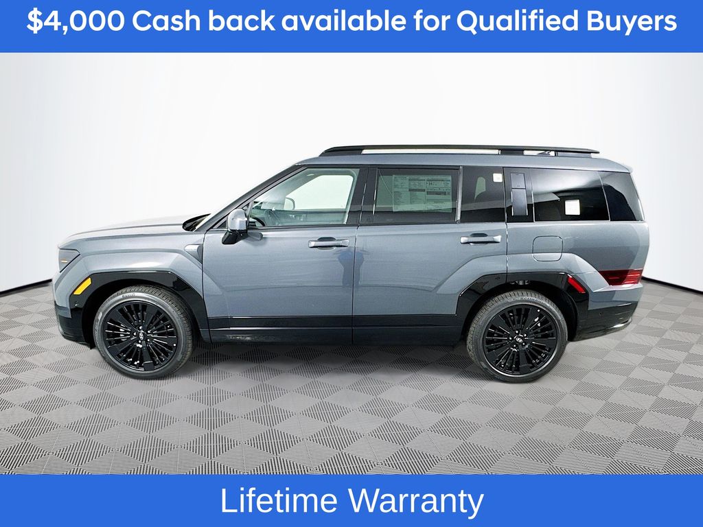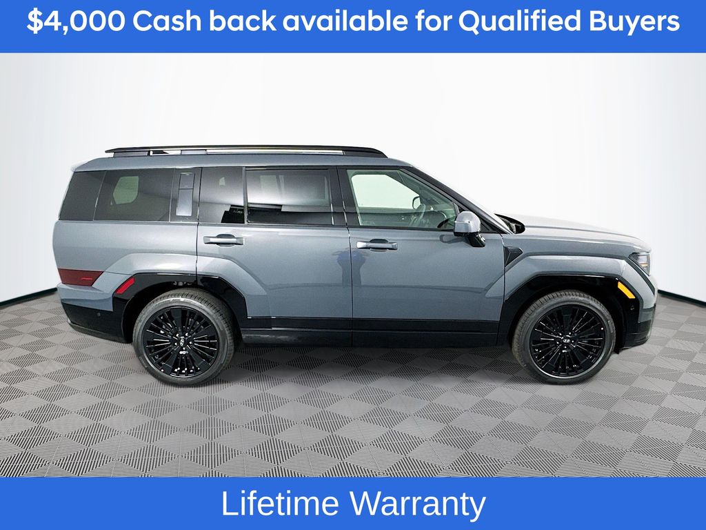 Ecotronic Gray 2026 Hyundai Santa Fe Hybrid Calligraphy AWD 6-Speed Automatic with Shiftronic I4Includes:Option Group 01, 12 Speakers, 3rd row seats: bench, 4-Wheel Disc Brakes, ABS brakes, Air Conditioning, All Season Fitted Liners, Alloy wheels, AM/FM radio: SiriusXM, Apple CarPlay & Android Auto, Auto High-beam Headlights, Auto-dimming Rear-View mirror, Automatic temperature control, Brake assist, Bumpers: body-color, Cargo Cover/Screen, Cargo Net, Carpeted Floor Mats, Delay-off headlights, Driver door bin, Driver vanity mirror, Dual front impact airbags, Dual front side impact airbags, Electronic Stability Control, Emergency communication system, Exterior Parking Camera Rear, First Aid Kit, Four wheel independent suspension, Front anti-roll bar, Front Bucket Seats, Front Center Armrest, Front dual zone A/C, Front reading lights, Fully automatic headlights, Garage door transmitter: HomeLink, Heads-Up Display, Heated and Ventilated Front Bucket Seats, Heated door mirrors, Heated front seats, Heated rear seats, Heated steering wheel, Illuminated entry, Knee airbag, Leather steering wheel, Low tire pressure warning, Memory seat, Navigation System, Occupant sensing airbag, Outside temperature display, Overhead airbag, Overhead console, Panic alarm, Passenger door bin, Passenger vanity mirror, Power door mirrors, Power driver seat, Power Liftgate, Power moonroof, Power passenger seat, Power steering, Power windows, Quilted Premium Nappa Leather Seat Trim, Radio: AM/FM/HD Bose Premium Audio System, Rain sensing wipers, Rear anti-roll bar, Rear side impact airbag, Rear window defroster, Rear window wiper, Remote keyless entry, Security system, Speed control, Speed-sensing steering, Split folding rear seat, Spoiler, Steering wheel mounted audio controls, Tachometer, Telescoping steering wheel, Tilt steering wheel, Traction control, Trip computer, Turn signal indicator mirrors, Variably intermittent wipers, Ventilated front seats, and Wheels: 20 x 8.5J Unique Dark Finish Alloy. Not all customers may qualify for all rebates listed, see dealer for details. Price includes: $4000 - Hyundai HMF Dealer Choice : $4000 discount and 5.39% APR for 24 months. $44.05 per $1000 financed. Available to well qualified buyers who finance through Hyundai Motor Finance. H704. Exp. 03/02/2026