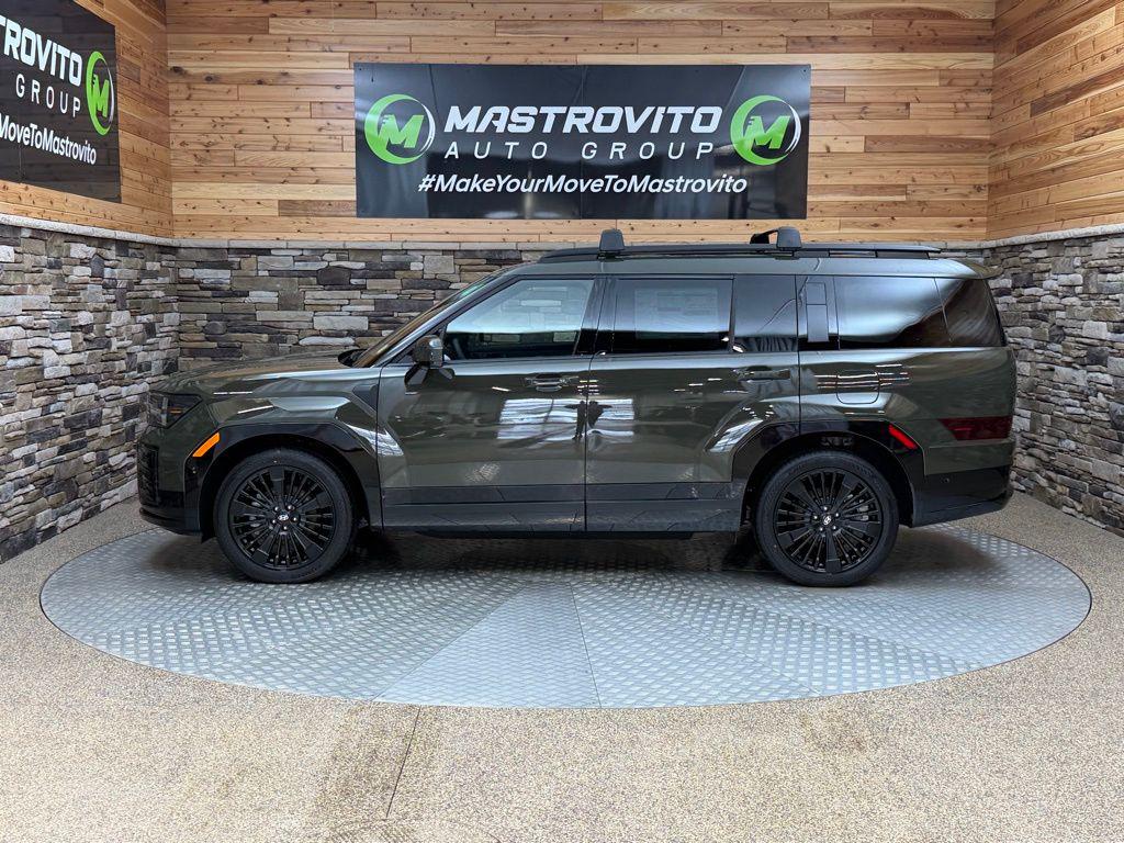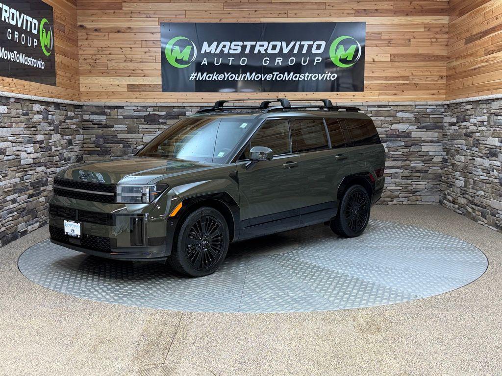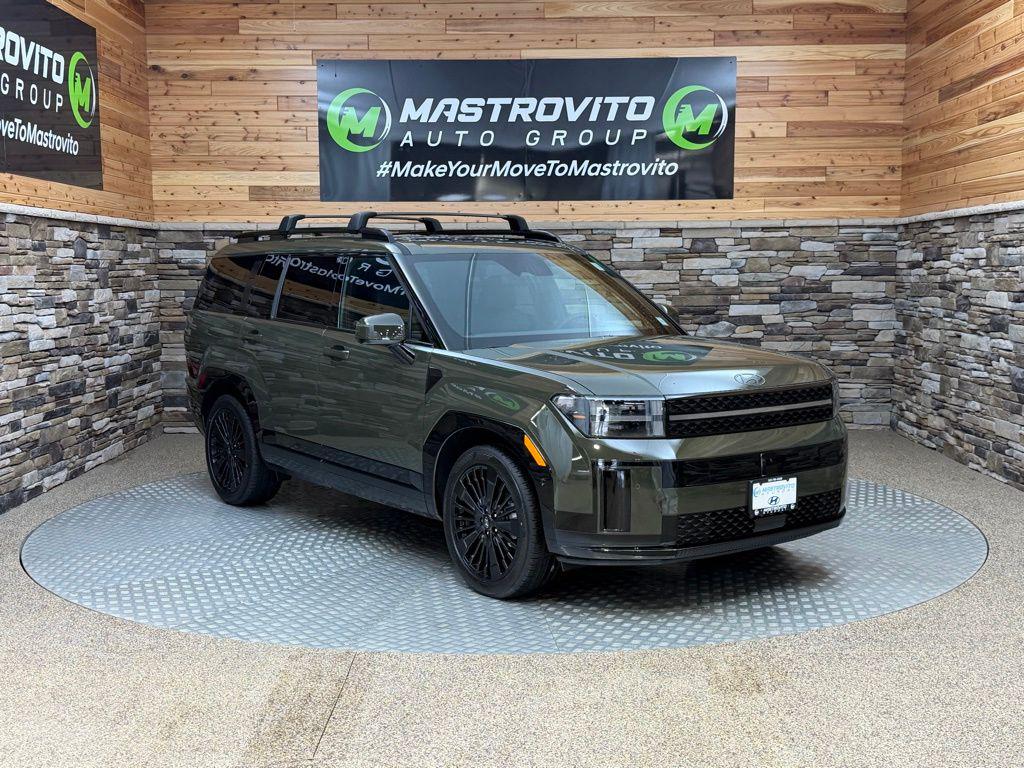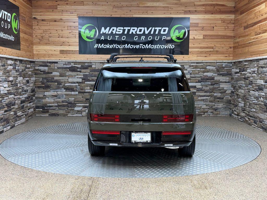 Rockwood Green 2026 Hyundai Santa Fe Hybrid Calligraphy AWD 6-Speed Automatic with Shiftronic I4 I4. Option Group 01, I4, 12 Speakers, 3rd row seats: bench, 4-Wheel Disc Brakes, ABS brakes, Air Conditioning, Alloy wheels, AM/FM radio: SiriusXM, Apple CarPlay Android Auto, Auto High-beam Headlights, Auto-dimming Rear-View mirror, Automatic temperature control, Brake assist, Bumpers: body-color, Cargo Net, Cargo Organizer, Carpeted Floor Mats, Delay-off headlights, Driver door bin, Driver vanity mirror, Dual front impact airbags, Dual front side impact airbags, Electronic Stability Control, Emergency communication system, Exterior Parking Camera Rear, First Aid Kit, Four wheel independent suspension, Front anti-roll bar, Front Bucket Seats, Front Center Armrest, Front dual zone A/C, Front reading lights, Fully automatic headlights, Garage door transmitter: HomeLink, Heads-Up Display, Heated and Ventilated Front Bucket Seats, Heated door mirrors, Heated front seats, Heated rear seats, Heated steering wheel, Illuminated entry, Knee airbag, Leather steering wheel, Low tire pressure warning, Memory seat, Navigation System, Occupant sensing airbag, Outside temperature display, Overhead airbag, Overhead console, Panic alarm, Passenger door bin, Passenger vanity mirror, Power door mirrors, Power driver seat, Power Liftgate, Power moonroof, Power passenger seat, Power steering, Power windows, Quilted Premium Nappa Leather Seat Trim, Radio: AM/FM/HD Bose Premium Audio System, Rain sensing wipers, Rear anti-roll bar, Rear side impact airbag, Rear window defroster, Rear window wiper, Remote keyless entry, Roadside Assistance Kit, Roof Rack Crossbars, Security system, Speed control, Speed-sensing steering, Split folding rear seat, Spoiler, Steering wheel mounted audio controls, Tachometer, Telescoping steering wheel, Tilt steering wheel, Traction control, Trip computer, Turn signal indicator mirrors, Variably intermittent wipers, Ventilated front seats, and Wheels: 20' x 8.5J Unique Dark Finish Alloy. Price includes: $4000 - Hyundai HMF Dealer Choice : $4000 discount and 5.39% APR for 24 months. $44.05 per $1000 financed. Available to well qualified buyers who finance through Hyundai Motor Finance. H704. Exp. 03/02/2026