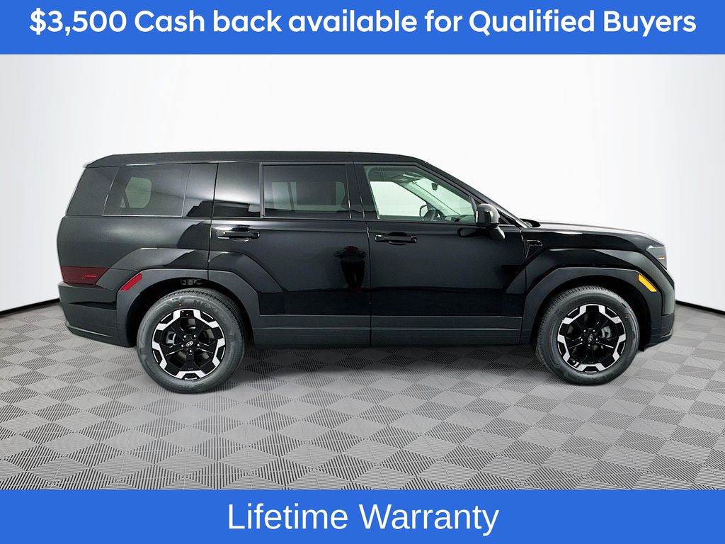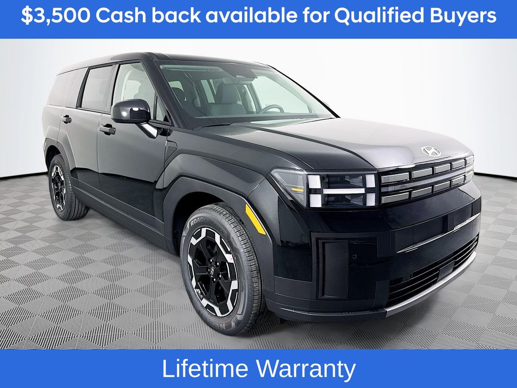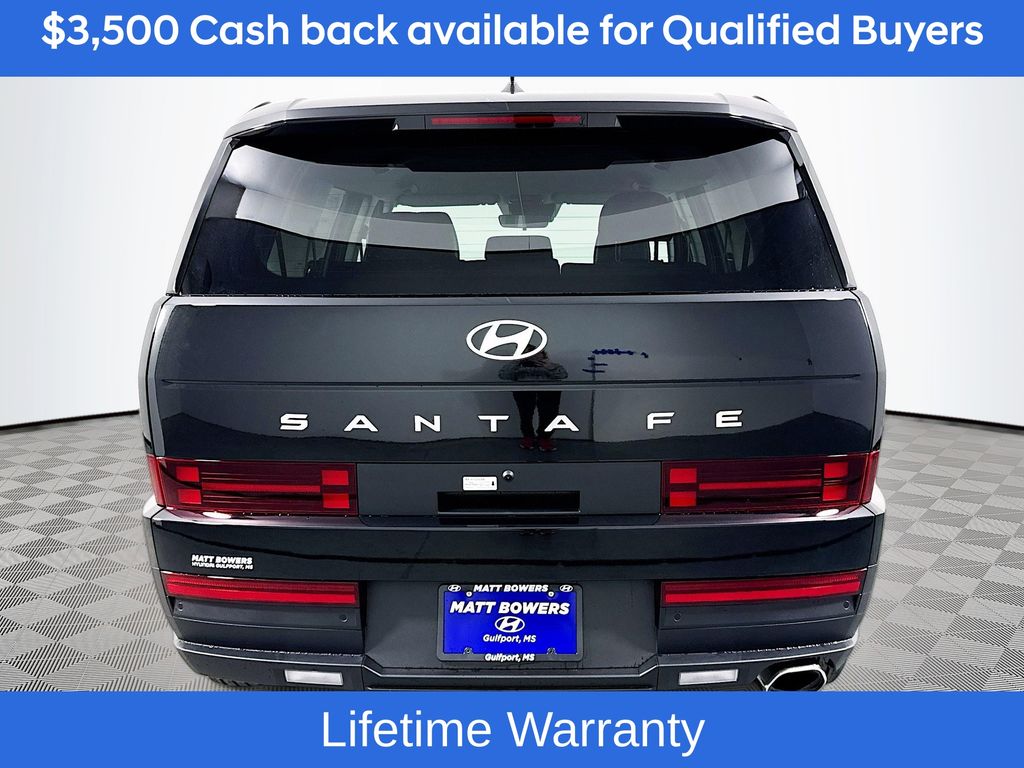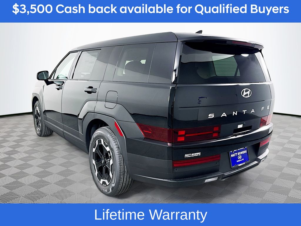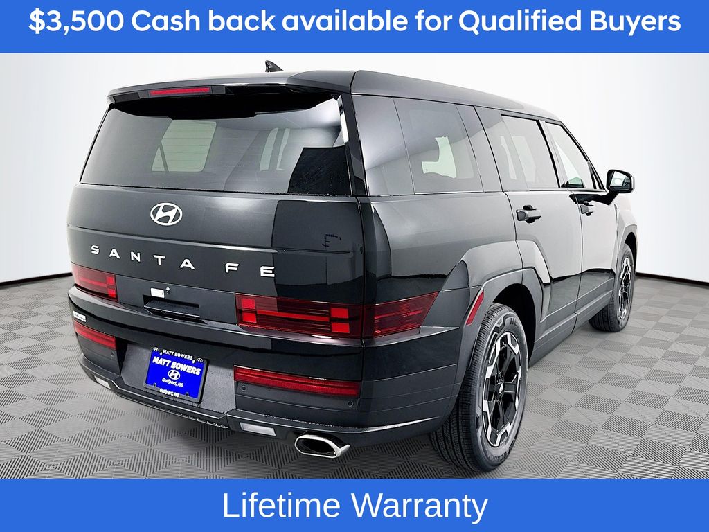 Phantom Black 2026 Hyundai Santa Fe SE FWD 8-Speed Automatic with SHIFTRONIC 2.5L I420/29 City/Highway MPGIncludes:Option Group 01, 18 x 7.5J Alloy Wheels, 3rd row seats: bench, 4-Wheel Disc Brakes, 6 Speakers, ABS brakes, Air Conditioning, Alloy wheels, AM/FM radio: SiriusXM, Apple CarPlay & Android Auto, Auto High-beam Headlights, Brake assist, Bumpers: body-color, Cargo Cover/Screen, Cargo Net, Carpeted Floor Mats, Delay-off headlights, Driver door bin, Driver vanity mirror, Dual front impact airbags, Dual front side impact airbags, Electronic Stability Control, Emergency communication system, Exterior Parking Camera Rear, First Aid Kit, Four wheel independent suspension, Front anti-roll bar, Front Bucket Seats, Front Center Armrest, Front reading lights, Fully automatic headlights, Heated door mirrors, Illuminated entry, Knee airbag, Leather steering wheel, Low tire pressure warning, Occupant sensing airbag, Outside temperature display, Overhead airbag, Overhead console, Panic alarm, Passenger door bin, Passenger vanity mirror, Power door mirrors, Power Liftgate, Power steering, Power windows, Radio: AM/FM/HD Display Audio, Rear anti-roll bar, Rear seat center armrest, Rear side impact airbag, Rear window defroster, Rear window wiper, Remote keyless entry, Security system, Speed control, Speed-sensing steering, Split folding rear seat, Spoiler, Steering wheel mounted audio controls, Tachometer, Telescoping steering wheel, Tilt steering wheel, Traction control, Trip computer, Variably intermittent wipers, and YES Essentials Stain-Resistant Cloth Seat Trim. Not all customers may qualify for all rebates listed, see dealer for details. Price includes: $3500 - Hyundai HMF Dealer Choice : $3500 discount and 5.39% APR for 24 months. $44.05 per $1000 financed. Available to well qualified buyers who finance through Hyundai Motor Finance. H704. Exp. 03/02/2026
