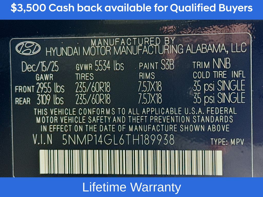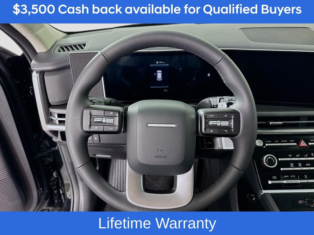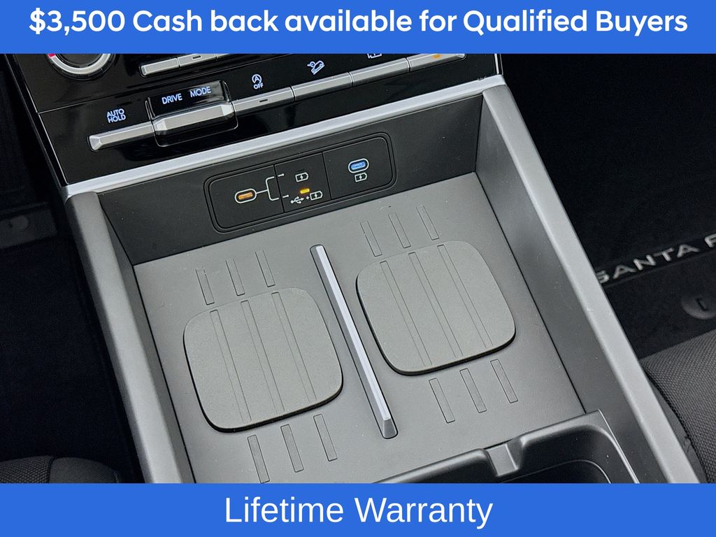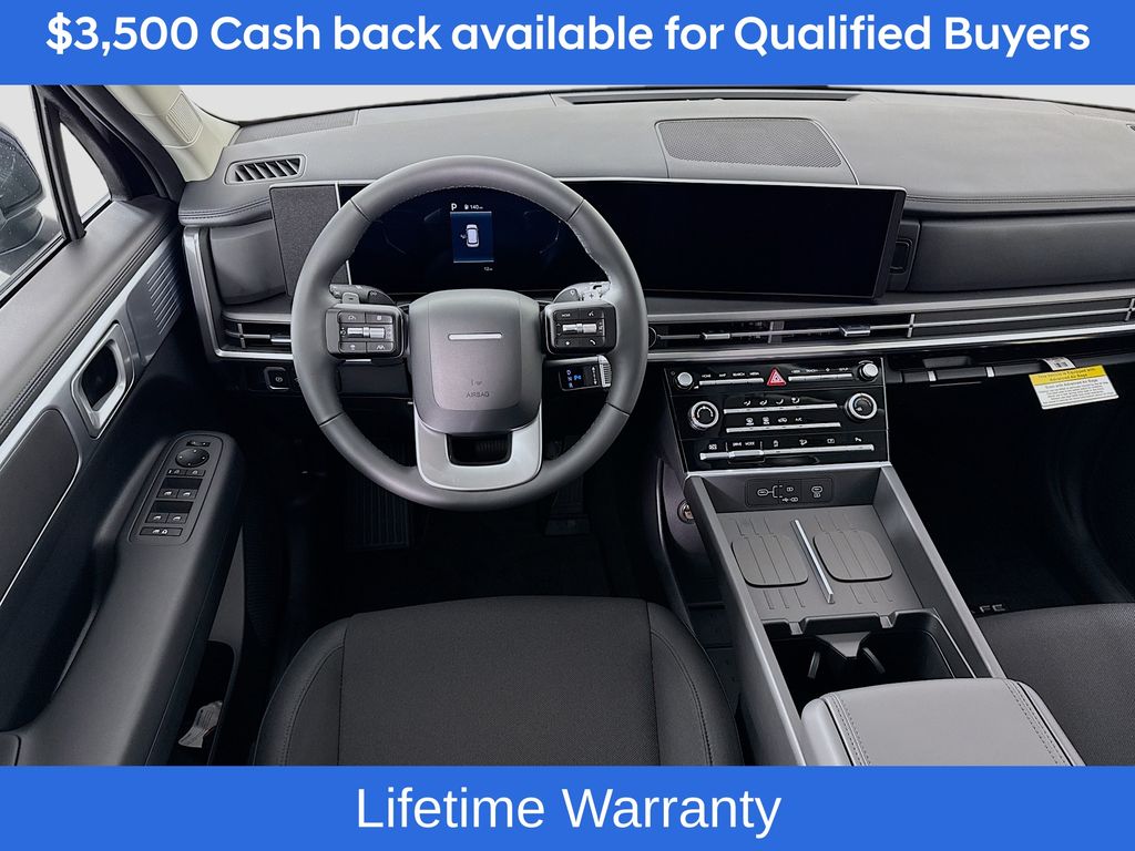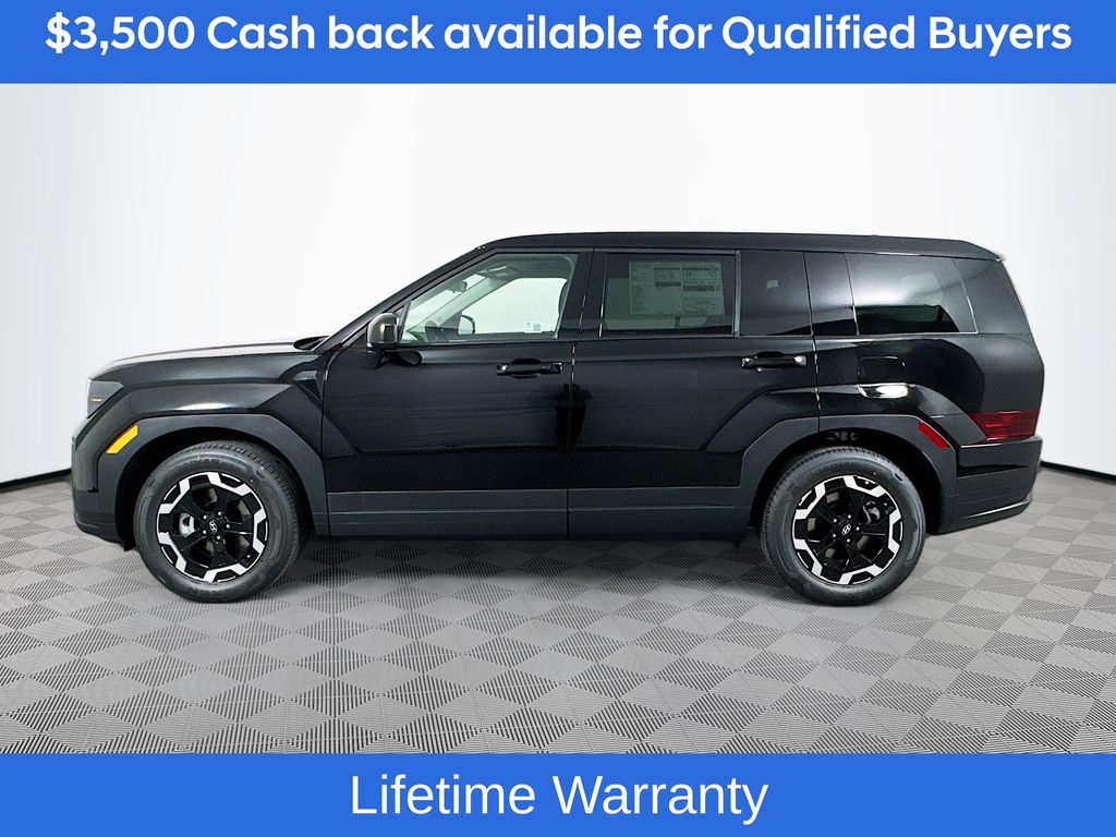 Phantom Black 2026 Hyundai Santa Fe SE FWD 8-Speed Automatic with SHIFTRONIC 2.5L I420/29 City/Highway MPGIncludes:Option Group 01, 18 x 7.5J Alloy Wheels, 3rd row seats: bench, 4-Wheel Disc Brakes, 6 Speakers, ABS brakes, Air Conditioning, Alloy wheels, AM/FM radio: SiriusXM, Apple CarPlay & Android Auto, Auto High-beam Headlights, Brake assist, Bumpers: body-color, Cargo Cover/Screen, Cargo Net, Carpeted Floor Mats, Delay-off headlights, Driver door bin, Driver vanity mirror, Dual front impact airbags, Dual front side impact airbags, Electronic Stability Control, Emergency communication system, Exterior Parking Camera Rear, First Aid Kit, Four wheel independent suspension, Front anti-roll bar, Front Bucket Seats, Front Center Armrest, Front reading lights, Fully automatic headlights, Heated door mirrors, Illuminated entry, Knee airbag, Leather steering wheel, Low tire pressure warning, Occupant sensing airbag, Outside temperature display, Overhead airbag, Overhead console, Panic alarm, Passenger door bin, Passenger vanity mirror, Power door mirrors, Power Liftgate, Power steering, Power windows, Radio: AM/FM/HD Display Audio, Rear anti-roll bar, Rear seat center armrest, Rear side impact airbag, Rear window defroster, Rear window wiper, Remote keyless entry, Security system, Speed control, Speed-sensing steering, Split folding rear seat, Spoiler, Steering wheel mounted audio controls, Tachometer, Telescoping steering wheel, Tilt steering wheel, Traction control, Trip computer, Variably intermittent wipers, and YES Essentials Stain-Resistant Cloth Seat Trim. Not all customers may qualify for all rebates listed, see dealer for details. Price includes: $3500 - Hyundai HMF Dealer Choice : $3500 discount and 5.39% APR for 24 months. $44.05 per $1000 financed. Available to well qualified buyers who finance through Hyundai Motor Finance. H704. Exp. 03/02/2026