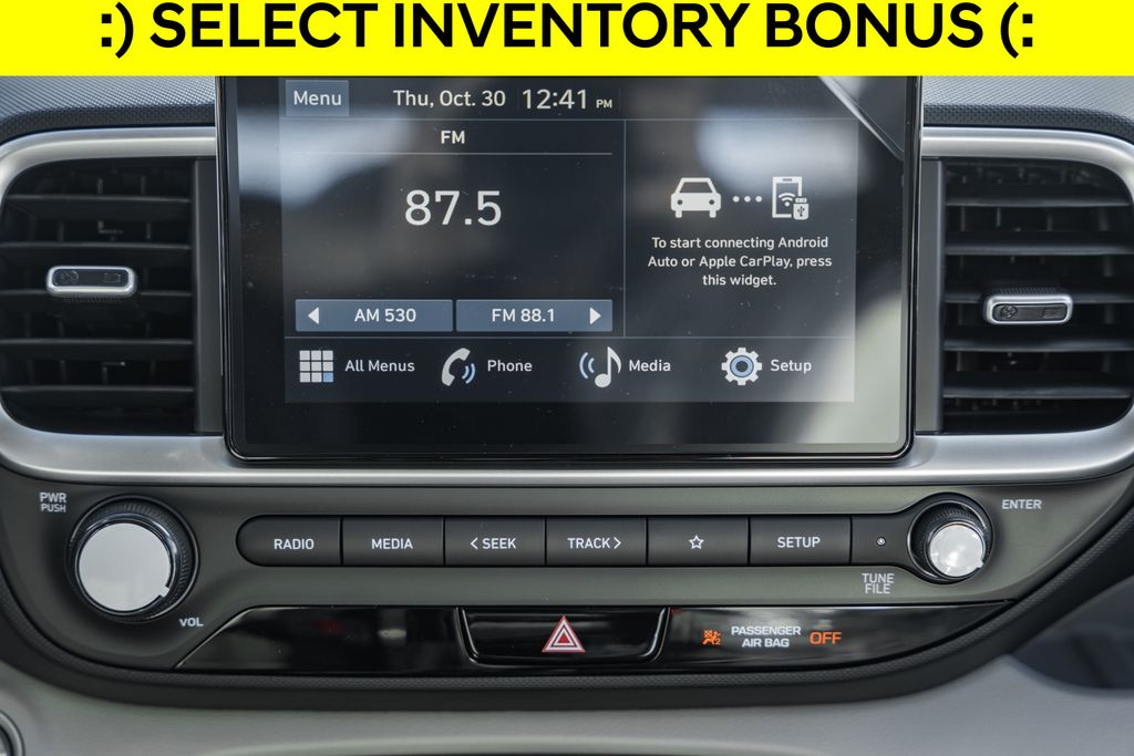 This NEW 2026 Onyx Black Hyundai Venue SEL FWD is well equipped and includes these features and benefits:Option Group 01, 4-Wheel Disc Brakes, 6 Speakers, 6.5J x 17 Alloy Wheels, ABS brakes, Air Conditioning, Alloy wheels, AM/FM radio, Apple CarPlay & Android Auto, Auto High-beam Headlights, Automatic temperature control, Brake assist, Bumpers: body-color, Cargo Net, Carpeted Floor Mats, Cloth Seat Trim, Cruise Control, Delay-off headlights, Driver door bin, Driver vanity mirror, Dual front impact airbags, Dual front side impact airbags, Electronic Stability Control, First Aid Kit, Front anti-roll bar, Front Bucket Seats, Front Center Armrest, Front reading lights, Front wheel independent suspension, Fully automatic headlights, Heated door mirrors, Heated Front Bucket Seats, Heated front seats, Illuminated entry, Leather Shift Knob, Leather steering wheel, Low tire pressure warning, Mudguards, Occupant sensing airbag, Outside temperature display, Overhead airbag, Overhead console, Panic alarm, Passenger door bin, Passenger vanity mirror, Power door mirrors, Power moonroof, Power steering, Power windows, Radio: AM/FM/HD Display Audio, Rear Seat Cup Holder, Rear window defroster, Rear window wiper, Remote keyless entry, Reversible Cargo Tray, Security system, Speed-sensing steering, Split folding rear seat, Spoiler, Steering wheel mounted audio controls, Tachometer, Telescoping steering wheel, Tilt steering wheel, Traction control, Trip computer, and Variably intermittent wipers.I4 29/32 City/Highway MPGPricing Disclaimer: We make every effort to provide accurate information, but please verify options and price prior to purchase. All financing is subject to approved credit. Prices do not include tax, tags, title, registration, electronic filing fee, processing fee of $800 (Not required by law) Located at 2404 Robert S. Crain Hwy A, Bowie, MD 20716. Price includes: $500 - First Responders Program. Exp. 01/02/2026 $500 - Military Program. Exp. 01/02/2026