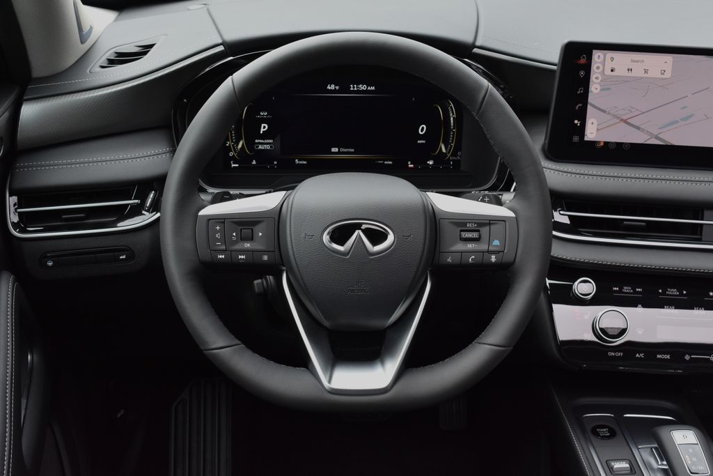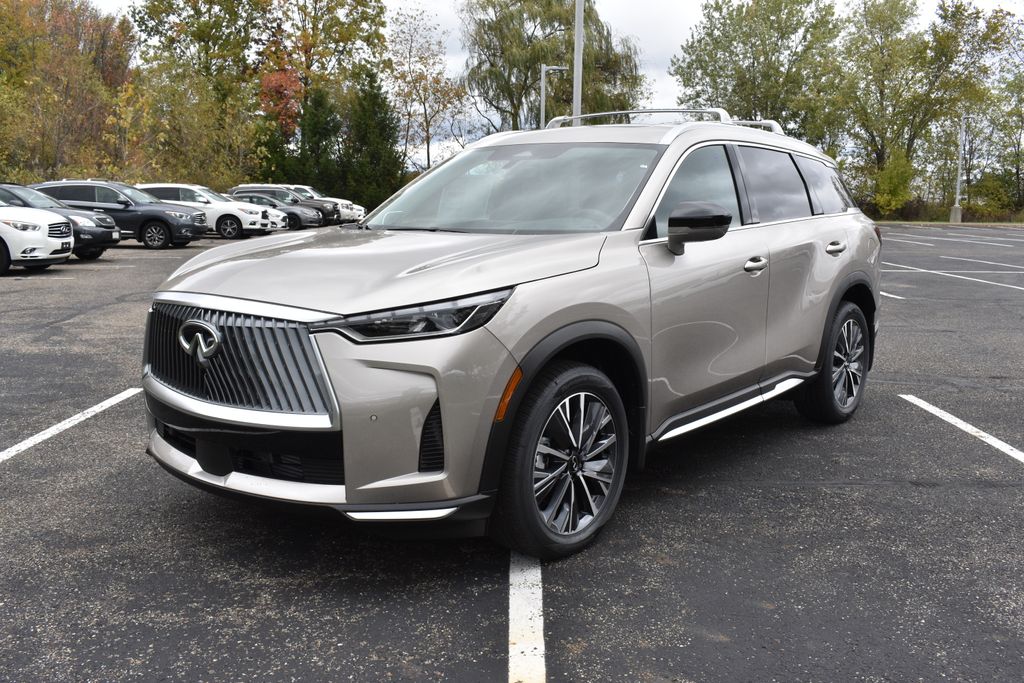 Discover the exceptional 2026 INFINITI QX60 LUXE AWD, a true masterpiece of design and engineering. This stunning SUV boasts a captivating Silver exterior, complemented by a suite of premium features that elevate the driving experience.Indulge in the remarkable amenities that set this QX60 apart:- Premium Paint- INFINITI Radiant Silver Illuminated Kick Plates- Silver Roof Rail Crossbars- Cargo Package, including underfloor dividers, Cargo Blocks, Cargo Mat, Medic Kit, Cargo Net, and Clear Rear Bumper Film- Splash GuardsBut the true allure of this vehicle lies in its remarkable capabilities and cutting-edge technology. Powered by a 2.0L I4 PDI Turbocharged DOHC 16V 268hp engine paired with a 9-Speed Automatic transmission, the QX60 LUXE AWD delivers exceptional performance and efficiency, with an impressive 22 city and 27 highway MPG.Step inside and be captivated by the thoughtfully designed interior, featuring a Bose Performance Series 17-Speaker Sound System, Navigation System with Google Built-in, and a Panoramic Power Moonroof that floods the cabin with natural light. The heated and ventilated front seats, along with the heated rear seats, ensure unparalleled comfort for all passengers.Safety is of the utmost importance, and this QX60 LUXE AWD delivers with a comprehensive suite of advanced features. Enjoy the peace of mind of Electronic Stability Control, Traction Control, Front and Rear Anti-Roll Bars, and a suite of airbags, including Dual Front Impact, Dual Front Side Impact, and Overhead Airbags.As you take the wheel, you'll appreciate the intuitive controls and the seamless integration of Apple CarPlay and Android Auto, keeping you connected and entertained on every journey. The Power Liftgate and Cargo Net ensure effortless loading and unloading, while the Splash Guards and Silver Roof Rail Crossbars add a touch of rugged elegance.This exceptional 2026 INFINITI QX60 LUXE AWD is available now for $57,750. Experience the pinnacle of luxury, performance, and technology by scheduling a test drive today. We're confident you'll be captivated by the exceptional quality and craftsmanship of this remarkable SUV.