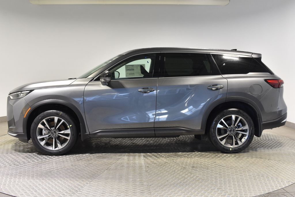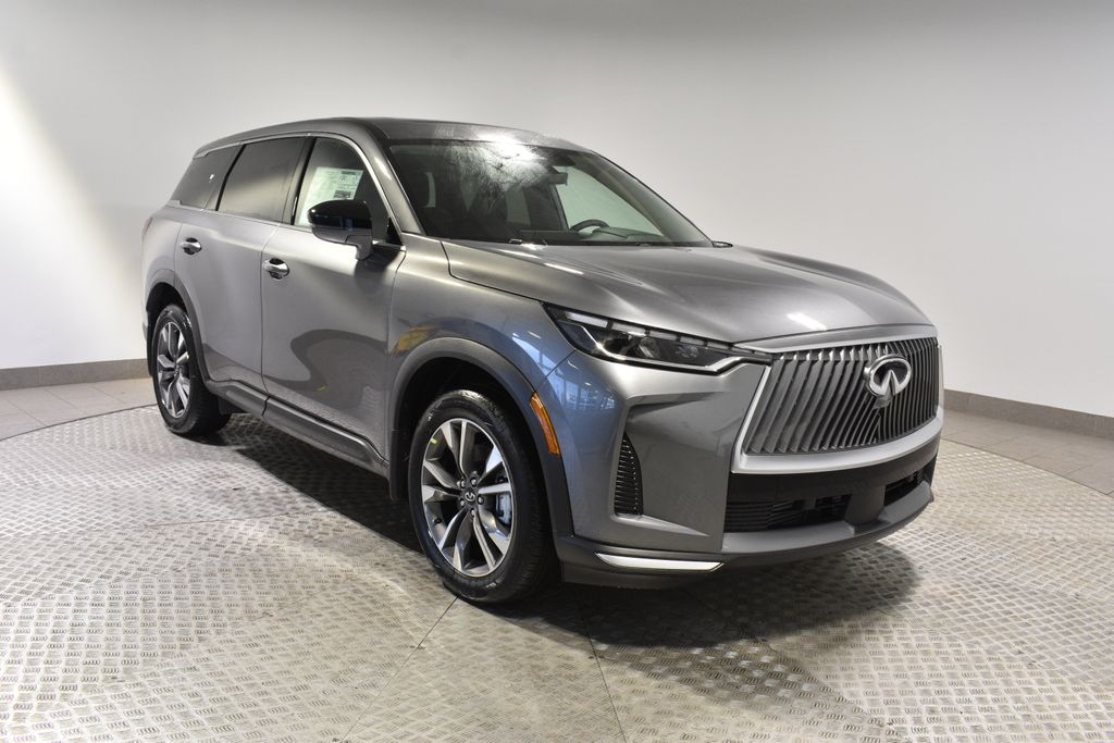 Elevate your driving experience with this exceptional 2026 INFINITI QX60 PURE AWD. Boasting a striking Gray exterior, this SUV combines style, performance, and cutting-edge technology to redefine your daily commute.Indulge in the convenience of Keyless Access with Push Button Start, along with a host of premium features: Keyless Access with Push Button Start INFINITI RADIANT SILVER ILLUMINATED KICK PLATES FAMILY PACKAGE: USB Charging Cable Set, Tablet Holder, Soft Sided Cargo Cooler, Seatback Organizer CARGO PACKAGE: Underfloor Dividers, Cargo Blocks, Cargo Mat, Medic Kit, Cargo Net, Clear Rear Bumper Film Splash GuardsElevate your driving experience with the QX60's impressive performance. Powered by a 2.0L I4 PDI Turbocharged DOHC 16V 268hp engine, paired with a 9-Speed Automatic transmission and AWD, this SUV delivers an exceptional blend of power and efficiency, with an EPA-estimated 22 city and 27 highway MPG.Indulge in the QX60's wealth of advanced features, including a Navigation System, AM/FM radio: SiriusXM with 360L, Automatic temperature control, Front dual zone A/C, Remote keyless entry, Steering wheel mounted audio controls, Traction control, Emergency communication system: INFINITI InTouch, Occupant sensing airbag, Power moonroof: Panoramic, Power Liftgate, Electronic Stability Control, Rear Parking Sensors, Auto High-beam Headlights, and Fully automatic headlights.Elevate your cargo-carrying capabilities with the QX60's Medic Kit, Cargo Blocks, Cargo Mat, Clear Rear Bumper Film, Seatback Organizer, Soft Sided Cargo Cooler, Tablet Holder, and USB Charging Cable Set. The 3rd row seats and Cargo Net further enhance the vehicle's versatility, ensuring you can accommodate all your family's needs.Experience the exceptional quality and craftsmanship of the 2026 INFINITI QX60 PURE AWD. Visit our showroom today and let us demonstrate how this remarkable SUV can transform your driving experience.