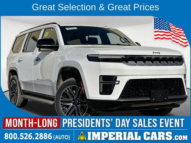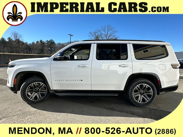 Heated Leather Seats, NAV, Sunroof, 3rd Row Seat, 4x4, Turbo, Alloy Wheels, Tow Hitch, 20 X 9 MACHINE FACE PAINTED ALUMINU... 3.0L I6 HURRICANE SO TWIN TURBO ESS E... 8-SPEED AUTO 880RE TRANSMISSION, PREMIUM GROUP I, Quad Seats. Grand Wagoneer trim, Bright White Clearcoat exterior and Global Black interior. Warranty 5 yrs/60k Miles - Drivetrain Warranty; <br><br><br><br>KEY FEATURES INCLUDE<br><br>Leather Seats, Third Row Seat, Navigation, 4x4, Quad Bucket Seats, Power Liftgate, Rear Air, Heated Driver Seat, Cooled Driver Seat, Running Boards, Premium Sound System, Satellite Radio, iPod/MP3 Input, Bluetooth, Trailer Hitch. MP3 Player, Remote Trunk Release, Privacy Glass, Keyless Entry, Child Safety Locks. <br><br><br><br>OPTION PACKAGES<br><br>PREMIUM GROUP I Side Distance Warning, 3rd Row 60/40 Power Recline Seat, Luxury Front & Rear Floor Mats, Reversible Carpet/Vinyl Cargo Mat, Surround View Camera System, Auto Power Folding Mirrors, P&P Park & Unpark Assist w/Stop System, Cargo Cover, Auto Power Folding Exterior Mirrors, Interior Rear Facing Camera, 3 Panel Sunroof, 20 X 9 MACHINE FACE PAINTED ALUMINUM WHEELS (STD), 8-SPEED AUTO 880RE TRANSMISSION (STD), 3.0L I6 HURRICANE SO TWIN TURBO ESS ENGINE (STD). Jeep Grand Wagoneer with Bright White Clearcoat exterior and Global Black interior features a Straight 6 Cylinder Engine with 420 HP at 5200 RPM*. <br><br><br><br><br><br>The Buy For Price reflects all applicable manufacturer rebates and/or incentives (not all will qualify) and is based on retail purchase with additional dealer discounts including a $1,000 Imperial Trade Assistance Bonus for qualifying retailable trades with less than 10 years of use from the original in service date. To Qualify for $500 Below Employee Pricing Offer you must qualify for First Responder or Military Rebates. All Rebates to Dealer. Price subject to change if manufacturer rebates change. Lease, business and fleet acquisitions may result in a different pricing and rebate structure. Price does not include tax, title, registration, and documentation fee or acquisition fee. All incentives and rebates go to the dealer. Due to the current unprecedented market conditions, availability of some vehicles is severely restricted. Acquisition and/or replenishment of these vehicles may come at a premium price. Accordingly, some vehicles may be sold at a price higher than MSRP. Vehicle must be paid in full and take same day delivery from dealer stock. No wholesalers or dealers. Call or email our phone and internet team for the most current rebate information and Imperial discounts. Our price online is for our market area only. Price cannot be combined with any other discounts or promotions. Not responsible for typographical or pricing errors. May include vehicle demonstrators. Stock images may be used and may not represent the actual vehicle. <br><br><br><br>Horsepower calculations based on trim engine configuration. Please confirm the accuracy of the included equipment by calling us prior to purchase. <br><br>