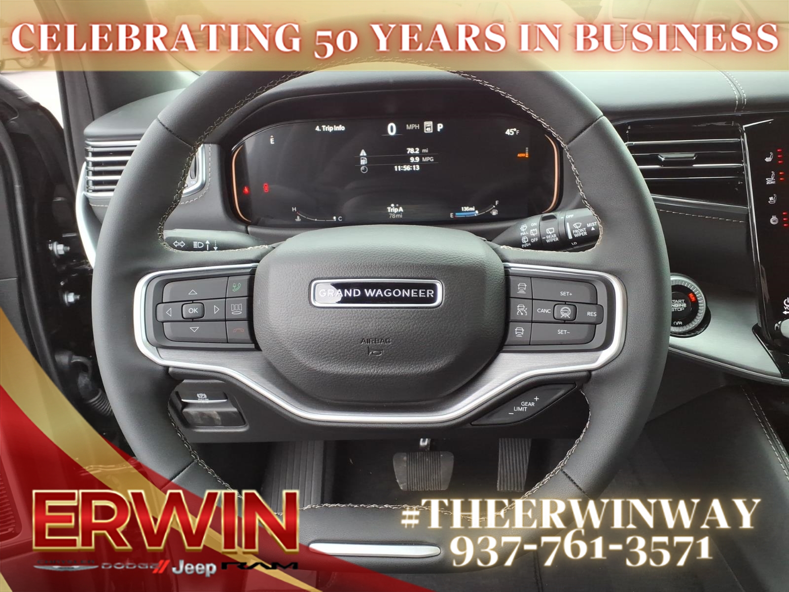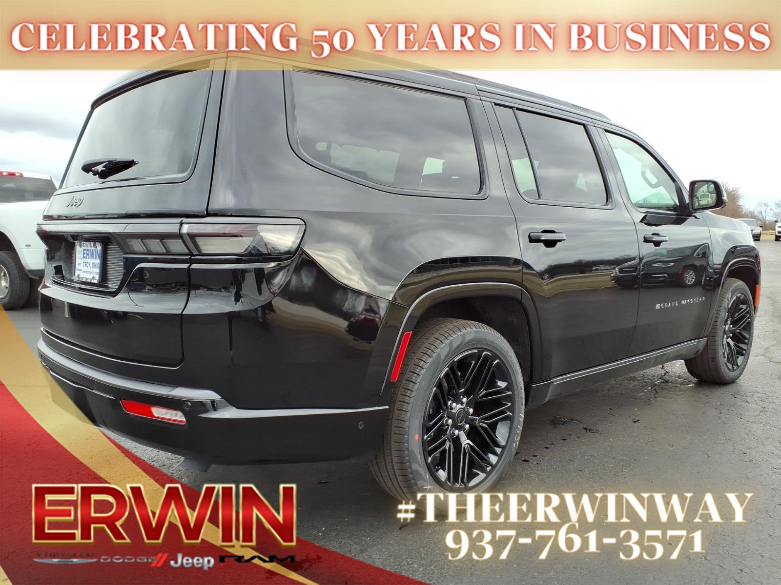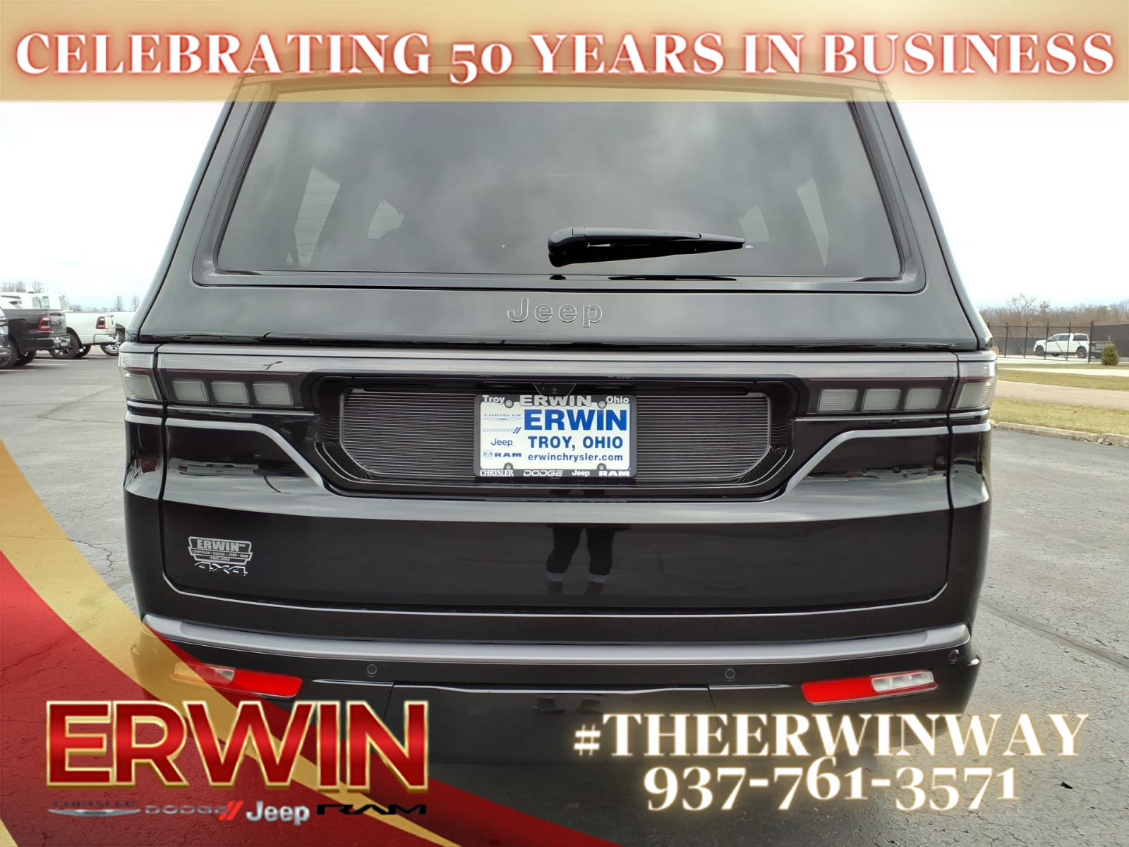 The 2026 Jeep Grand Wagoneer Limited Altitude is a state-of-the-art motorcar that is sure to impress. This 4x4 vehicle features a 3.0 liter 6 cylinder engine with twin turbochargers, and a black clear coat exterior that is sure to turn heads. Inside, the Grand Wagoneer Limited Altitude boasts luxurious leather-trimmed seats, a touch screen display, Bluetooth audio connection, blind spot sensor, hill start assist, full time four wheel drive, and navigation with voice recognition. This vehicle is sure to turn heads on the road as well as in the city. Contact Details: Erwin Chrysler Dodge Jeep, 2775 S Co Rd. 25a, Troy, OH, 45373, pat@erwinchrysler.com, 9373355696.