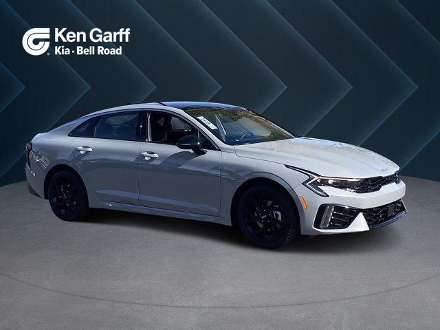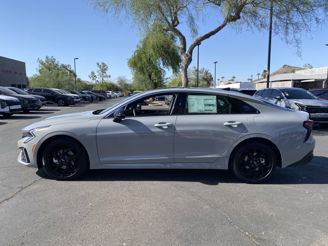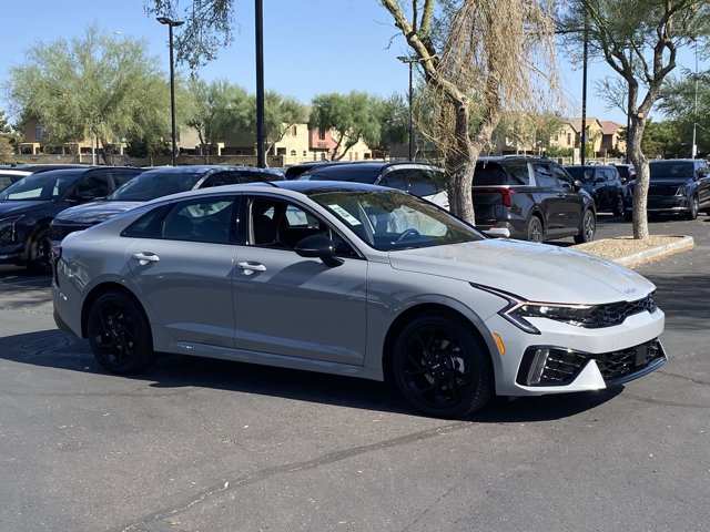 Wolf Gray 2026 Kia K5 GT-Line FWD 8-Speed Automatic I4 4-Wheel Disc Brakes, 6 Speakers, ABS brakes, Active Sound Design, Air Conditioning, Alloy wheels, AM/FM radio: SiriusXM, Auto High-beam Headlights, Automatic temperature control, Bose Premium Audio, Brake assist, Bumpers: body-color, Delay-off headlights, Driver door bin, Driver vanity mirror, Dual front impact airbags, Dual front side impact airbags, Electronic Stability Control, Emergency communication system: Kia Connect (includes 1 year free trial), Four wheel independent suspension, Front anti-roll bar, Front Bucket Seats, Front Center Armrest, Front dual zone A/C, Front fog lights, Front reading lights, Fully automatic headlights, GT-Line Premium Package, Heated door mirrors, Heated Front Bucket Seats, Heated front seats, Heated steering wheel, Illuminated entry, Knee airbag, Leather Shift Knob, Leather steering wheel, LED Interior Lighting, Low tire pressure warning, Navigation System, Occupant sensing airbag, Outside temperature display, Overhead airbag, Overhead console, Panic alarm, Panoramic Sunroof, Passenger door bin, Passenger vanity mirror, Power door mirrors, Power driver seat, Power steering, Power windows, Radio data system, Radio: AM/FM Audio System, Rear anti-roll bar, Rear seat center armrest, Rear side impact airbag, Rear window defroster, Remote keyless entry, Security system, Speed control, Speed-sensing steering, Split folding rear seat, Sport steering wheel, Steering wheel mounted audio controls, Tachometer, Telescoping steering wheel, Tilt steering wheel, Traction control, Trip computer, Turn signal indicator mirrors, Variably intermittent wipers, Wheels: 18 x 7.5J Gloss Black Machined Finish Alloy, Wheels: 18 x 7.5J Unique Gloss Black Alloy.Prices do not include any dealer installed options and advertised prices exclude leases. 25/36 City/Highway MPG Price includes: $500 - Sticker Sales Event Retail Bonus Cash. Exp. 01/02/2026