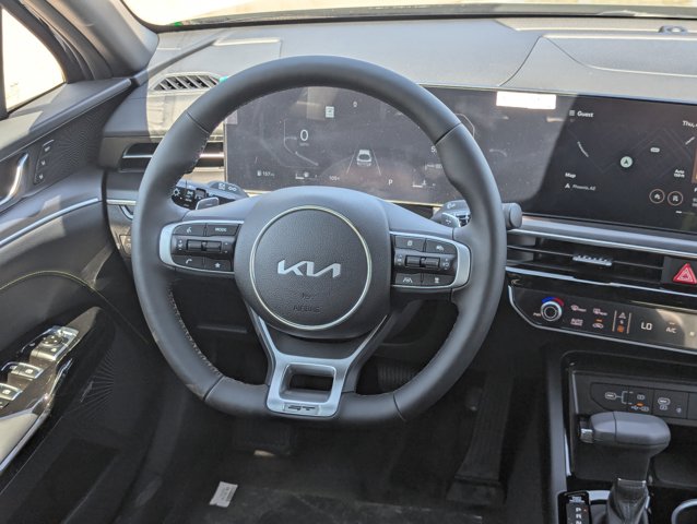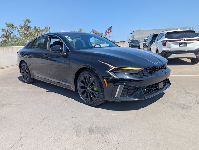 Aurora Black Pearl 2026 Kia K5 GT FWD 8-Speed DCT I4 12.3 Instrument Display, 4-Wheel Disc Brakes, 6 Speakers, ABS brakes, Active Sound Design, Air Conditioning, Alloy wheels, AM/FM radio: SiriusXM, Auto High-beam Headlights, Auto Up/Down Front Passenger and Rear Windows, Automatic temperature control, Blind-Spot View Monitor, Bose Premium Audio, Brake assist, Bumpers: body-color, Delay-off headlights, Driver door bin, Driver vanity mirror, Dual front impact airbags, Dual front side impact airbags, Electronic Stability Control, Emergency communication system: Kia Connect (includes 1 year free trial), Four wheel independent suspension, Front anti-roll bar, Front Bucket Seats, Front Center Armrest, Front dual zone A/C, Front fog lights, Front reading lights, Fully automatic headlights, GT1 Package, Heated door mirrors, Heated front seats, Heated Sport Bucket Seats, Heated Steering Wheel, Illuminated entry, Knee airbag, Leather Shift Knob, Leather steering wheel, Low tire pressure warning, Memory Driver's Seat and Outside Mirrors, Navigation System, Occupant sensing airbag, Outside temperature display, Overhead airbag, Overhead console, Panic alarm, Parking Collision Avoidance-Assist - Reverse, Parking Distance Warning - Side, Passenger door bin, Passenger vanity mirror, Power door mirrors, Power driver seat, Power Folding Mirrors, Power Front Passenger Seat, Power moonroof, Power steering, Power windows, Radio data system, Radio: AM/FM Audio System, Rear anti-roll bar, Rear reading lights, Rear seat center armrest, Rear side impact airbag, Rear window defroster, Remote keyless entry, Security system, Smartphone Digital Key, Speed control, Speed-sensing steering, Split folding rear seat, Sport steering wheel, Steering wheel mounted audio controls, Surround View Monitor, SynTex Seat Trim, Tachometer, Telescoping steering wheel, Tilt steering wheel, Traction control, Trip computer, Turn signal indicator mirrors, Variably intermittent wipers, Ventilated Front Seats, Wheels: 19 x 8.0J Gloss Black Custom Alloy, Wheels: 19 x 8.0J Gloss Black Machined Finish Alloy.Prices do not include any dealer installed options and advertised prices exclude leases. 23/33 City/Highway MPG