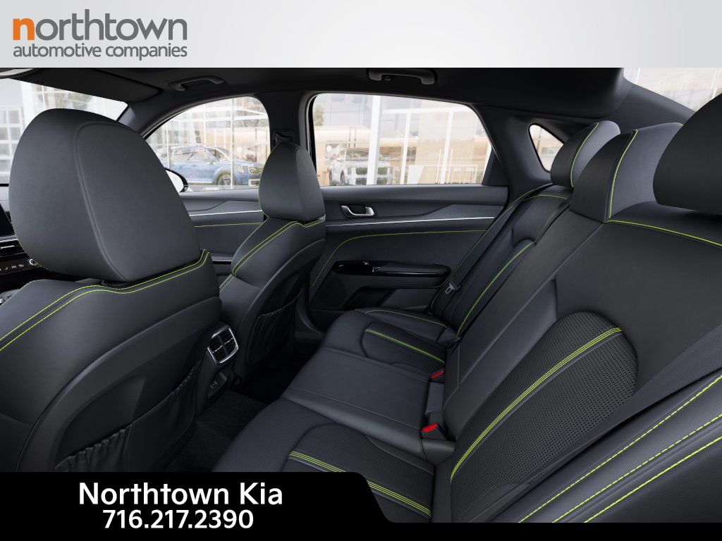 Aurora Black Pearl 2026 Kia K5 GT FWD 8-Speed DCT I4 23/33 City/Highway MPG See the rest of our inventory at: NORTHTOWNKIA.COM GT1 Package (12.3' Instrument Display, Active Sound Design, Blind-Spot View Monitor, Bose Premium Audio, Heated Steering Wheel, Parking Collision Avoidance-Assist - Reverse, Parking Distance Warning - Side, Power Folding Mirrors, Power Front Passenger Seat, Smartphone Digital Key, Surround View Monitor, Ventilated Front Seats, and Wheels: 19' x 8.0J Gloss Black Custom Alloy), 4-Wheel Disc Brakes, 6 Speakers, ABS brakes, Air Conditioning, Alloy wheels, AM/FM radio: SiriusXM, Auto High-beam Headlights, Automatic temperature control, Brake assist, Bumpers: body-color, Carpeted Floor Mats, Delay-off headlights, Driver door bin, Driver vanity mirror, Dual front impact airbags, Dual front side impact airbags, Electronic Stability Control, Emergency communication system: Kia Connect (includes 1 year free trial), Four wheel independent suspension, Front anti-roll bar, Front Bucket Seats, Front Center Armrest, Front dual zone A/C, Front fog lights, Front reading lights, Fully automatic headlights, Heated door mirrors, Heated front seats, Heated Sport Bucket Seats, Illuminated entry, Knee airbag, Leather Shift Knob, Leather steering wheel, Low tire pressure warning, Navigation System, Occupant sensing airbag, Outside temperature display, Overhead airbag, Overhead console, Panic alarm, Passenger door bin, Passenger vanity mirror, Power door mirrors, Power driver seat, Power moonroof, Power steering, Power windows, Radio data system, Radio: AM/FM Audio System, Rear anti-roll bar, Rear reading lights, Rear seat center armrest, Rear side impact airbag, Rear window defroster, Remote keyless entry, Security system, Speed control, Speed-sensing steering, Split folding rear seat, Sport steering wheel, Steering wheel mounted audio controls, SynTex Seat Trim, Tachometer, Telescoping steering wheel, Tilt steering wheel, Traction control, Trip computer, Turn signal indicator mirrors, Variably intermittent wipers, Wheel Locks, and Wheels: 19' x 8.0J Gloss Black Machined Finish Alloy.