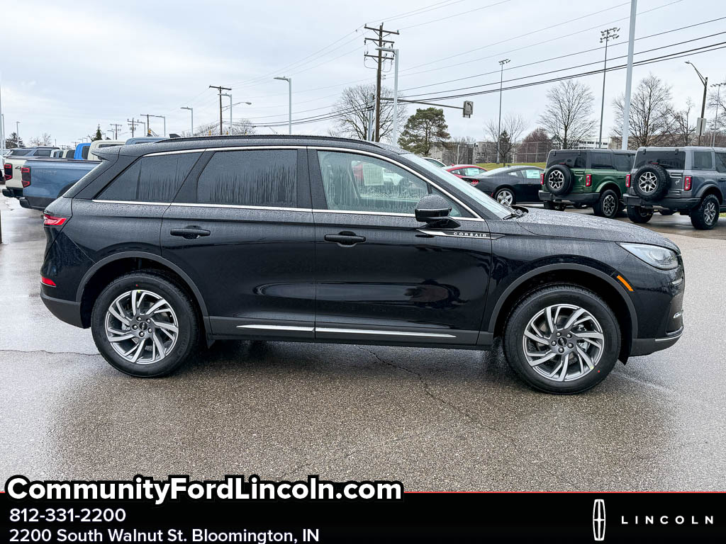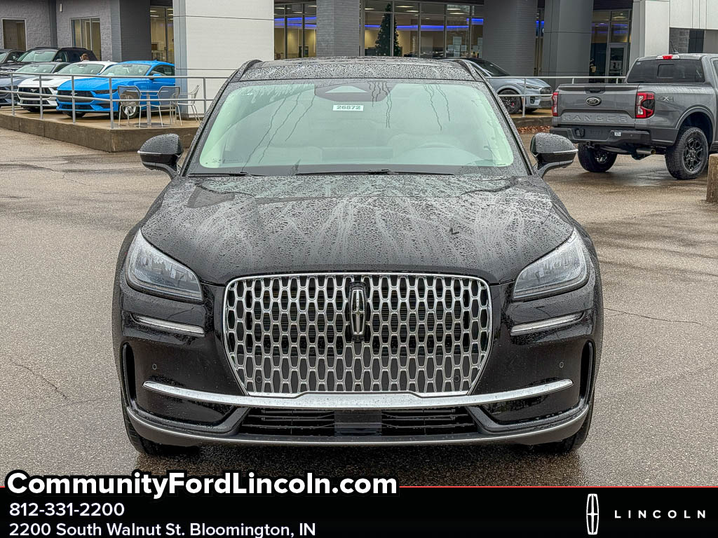 <b>Vehicle Details</b><br>Elevate your driving experience with this 2026 Lincoln Corsair Premiere' now available in Bloomington' IN. This premium compact SUV combines sophisticated design with advanced technology' featuring a responsive 2.0L 4-cylinder gasoline engine and confident AWD for enhanced traction in all conditions. The Premiere trim offers a refined interior and smooth ride quality ideal for city streets and open highways alike. Safety and convenience are prioritized with Cross-Traffic Alert and Adaptive Cruise Control' helping you stay aware and comfortable on longer journeys. Hands-Free Bluetooth keeps your focus on the road while making calls and streaming music seamlessly. Built-in Navigation guides you confidently to destinations across Indiana and beyond. Smartphone integration is seamless with Android Auto' allowing easy access to navigation' messaging' and entertainment apps. This Lincoln Corsair Premiere pairs upscale amenities with practical performancespacious seating' premium materials' and intuitive controls make every drive enjoyable. With a best-price guarantee' you're getting exceptional value for a luxury compact SUV in the Bloomington area. Whether commuting' weekend road trips' or family errands' this Lincoln delivers refined performance' modern safety features' and connected technology. Schedule a test drive in Bloomington' IN today and experience the blend of comfort' capability' and value that the 2026 Lincoln Corsair Premiere AWD provides. Competitive pricing and immediate availability make this an outstanding choice.<br><br><b>Equipment</b><br>This Lincoln Corsair has auto-adjust speed for safe following. The rear parking assist technology on it will put you at ease when reversing. The system alerts you as you get closer to an obstruction. The leather seats in this model are a must for buyers looking for comfort' durability' and style. This model offers Apple CarPlay for seamless connectivity. Never get into a cold vehicle again with the remote start feature on this vehicle. This Lincoln Corsair comes equipped with Android Auto for seamless smartphone integration on the road. Bluetooth technology is built into it' keeping your hands on the steering wheel and your focus on the road. This mid-size suv warns of approaching vehicles with Cross-Traffic Alert. This model's Rain Sensing Wipers automatically adjusts wipers in rain. Protect this model from unwanted accidents with a cutting edge backup camera system. Keep your hands warm all winter with a heated steering wheel in the vehicle .<br><br><b>Packages</b><br>Equipment Group 101A Premiere II: 2.0L Turbocharged I-4 Engine; 18 Bright Machined Aluminum Wheels with Dark Tarnish Finish; Hands-Free Liftgate; 2 Additional USB Ports (illuminated Types C and C) - Rear of Center Console; Micro-Perforated Lincoln Soft Touch Front Captain's Chairs; Rain Sensing Wipers; Power Tilt/telescoping Steering Column with Memory; Phone As A Key (PAAK); Frameless Auto Dimming Rearview Mirror; 60/40 EasyFold Rear Seat with Power Seatback Release; Windshield Wiper De-Icer; Lincoln Premium Audio System; 8-Speed Automatic Transmission (8F35) with SelectShift Capability; Universal Garage Door Opener; Sideview Mirrors; Heated Steering Wheel; 225/60R18 All-Season BSW Tires; Wireless Charging Pad. Lincoln Co-Pilot360 Vision 2.0: Reverse Brake Assist; 360-Degree Camera; Front Parking Sensors; Post-Collision Braking. Panoramic Vista Roof with Power Shade. 18 Bright Machined Aluminum Wheels with Dark Tarnish Finish. 17 Mini Steel Spare Wheel. **Equipment listed is based on original vehicle build and subject to change. Please confirm the accuracy of the included equipment by calling the dealer prior to purchase.**<br><br><b>Additional Information</b><br>Please call 812-331-2200 for more information or to schedule your test drive. The price displayed includes available Lincoln AFS incentives and does not include $237 documentation fee. Please visit us at 2200 S Walnut St in Bloomington' or at www.lincolnofbloomington.net