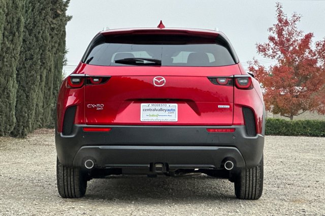 Scores 37 Highway MPG and 39 City MPG! This MAZDA CX-50 HYBRID delivers a Gas/Electric I-4 2.5 L/152 engine powering this Variable transmission. SOUL RED CRYSTAL METALLIC PAINT CHARGE, SOUL RED CRYSTAL METALLIC, LIFE STYLE MOUNT.* This MAZDA CX-50 HYBRID Features the Following Options *CARGO PACKAGE -inc: Cargo Net, Cargo Blocks , CARPET CARGO MAT, BLACK, HALF LEATHERETTE SEAT TRIM, BLACK LUG NUTS & BLACK WHEEL LOCKS, Wireless Phone Connectivity, Valet Function, Trunk/Hatch Auto-Latch, Trip Computer, Transmission w/Driver Selectable Mode and Sequential Shift Control, Torsion Beam Rear Suspension w/Coil Springs.* Stop By Today *For a must-own MAZDA CX-50 HYBRID come see us at Modesto Mazda, 4100 McHenry Ave, Modesto, CA 95356. Just minutes away!