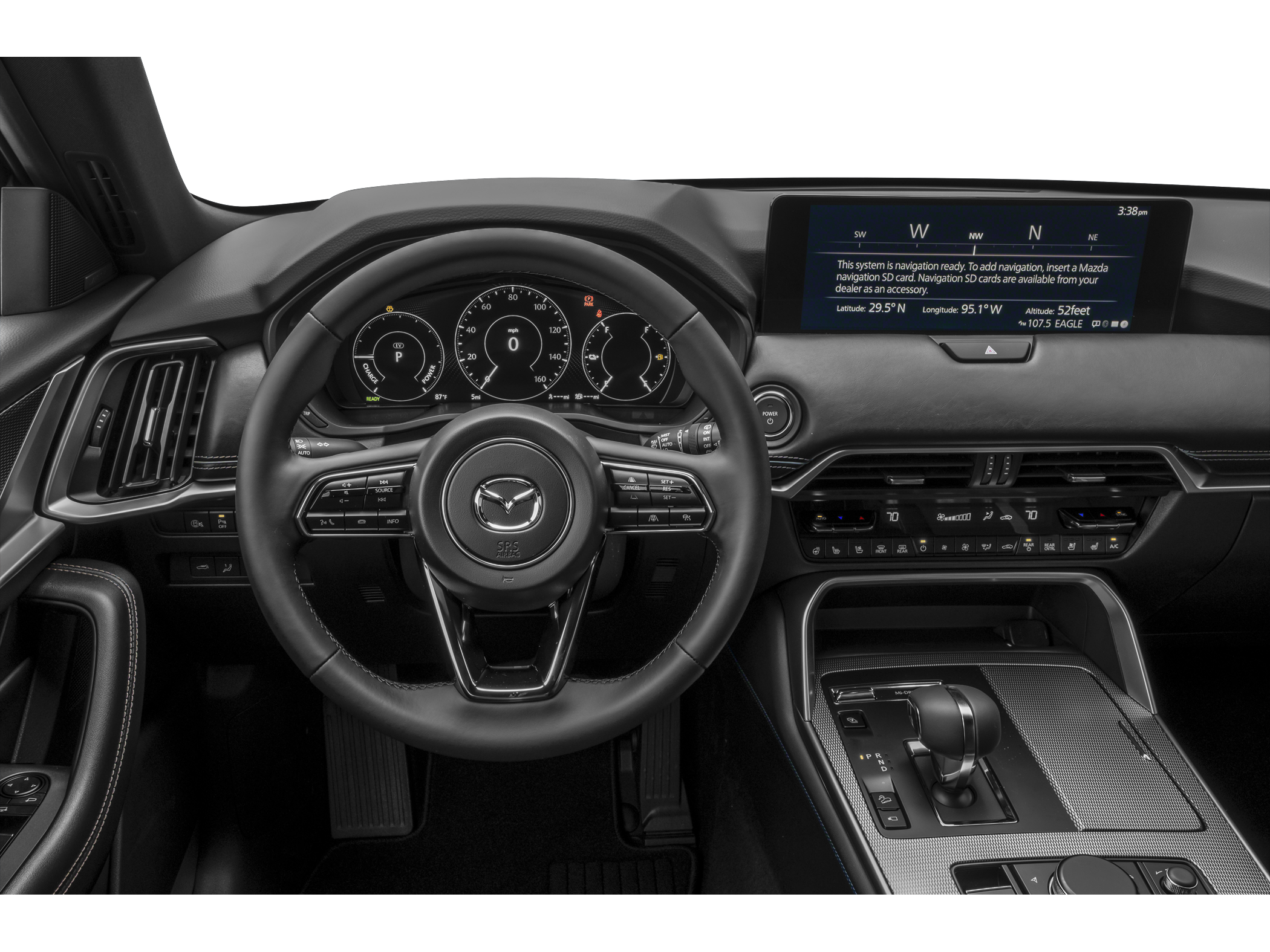 <b>Equipment</b><br>This Mazda CX-70 PHEV stays safely in its lane with Lane Keep Assist. See what's behind you with the back up camera on this unknown / other. This vehicle is equipped with the latest generation of XM/Sirius Radio. The vehicle offers Android Auto for seamless smartphone integration. Keep your hands warm all winter with a heated steering wheel in the vehicle . Engulf yourself with the crystal clear sound of a BOSE sound system in this Mazda CX-70 PHEV. Start the vehicle from inside with remote start. You'll never again be lost in a crowded city or a country region with the navigation system on this unit. The leather seats in the Mazda CX-70 PHEV are a must for buyers looking for comfort' durability' and style. Apple CarPlay: Seamless smartphone integration for this Mazda CX-70 PHEV - stay connected and entertained on the go! Bluetooth technology is built into this vehicle' keeping your hands on the steering wheel and your focus on the road.<br><br><b>Packages</b><br>Zircon Sand Metallic Paint Charge. Navigation SD Card. All Weather Floor Mats. **Equipment listed is based on original vehicle build and subject to change. Please confirm the accuracy of the included equipment by calling the dealer prior to purchase.**