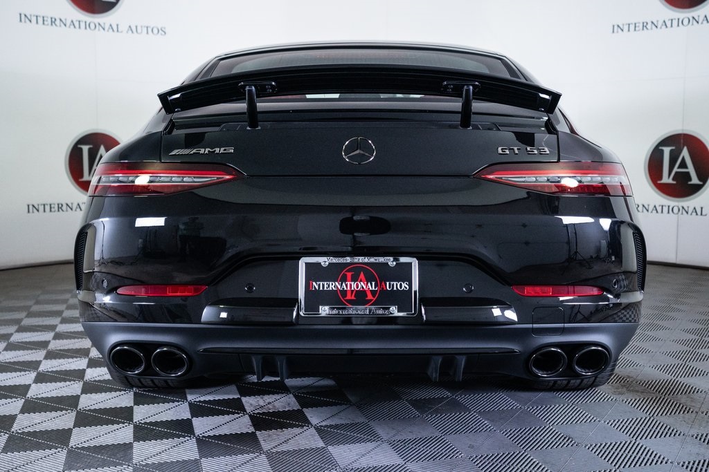 obsidian black metallic 2026 Mercedes-Benz AMG GT 53 4MATIC 4MATIC 9-Speed Automatic I6 I6, Active Blind Spot Assist, Active Distance Assist DISTRONIC, Active Emergency Stop Assist, Active Lane Change Assist, Active Speed Limit Assist, Active Steering Assist, Adaptive suspension, AMG Night Package, Apple CarPlay/Android Auto, Black-Chrome Exhaust Tips, Dark Tinted Grille, Driver Assistance Package, Driver Assistance Plus Package, Evasive Steering Assist, Extended Night Package, Exterior Elements in Black, Exterior Lettering in Black, Heated front seats, Heated Steering Wheel, High-Gloss Black Front Splitter, High-Gloss Black Mirror Covers, High-Gloss Black Rear Diffuser Insert, High-Gloss Black Side Sill Inserts, High-Gloss Black Window Trim, MANUFAKTUR Black Microfiber Headliner, Nappa Leather Upholstery, Power Liftgate, Power moonroof, Rapid Heating Front Seats, Route-Based Speed Adaptation, Traffic Sign Assist.