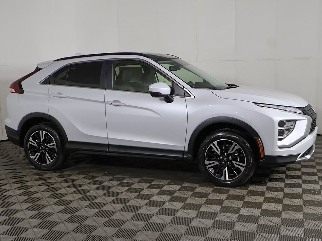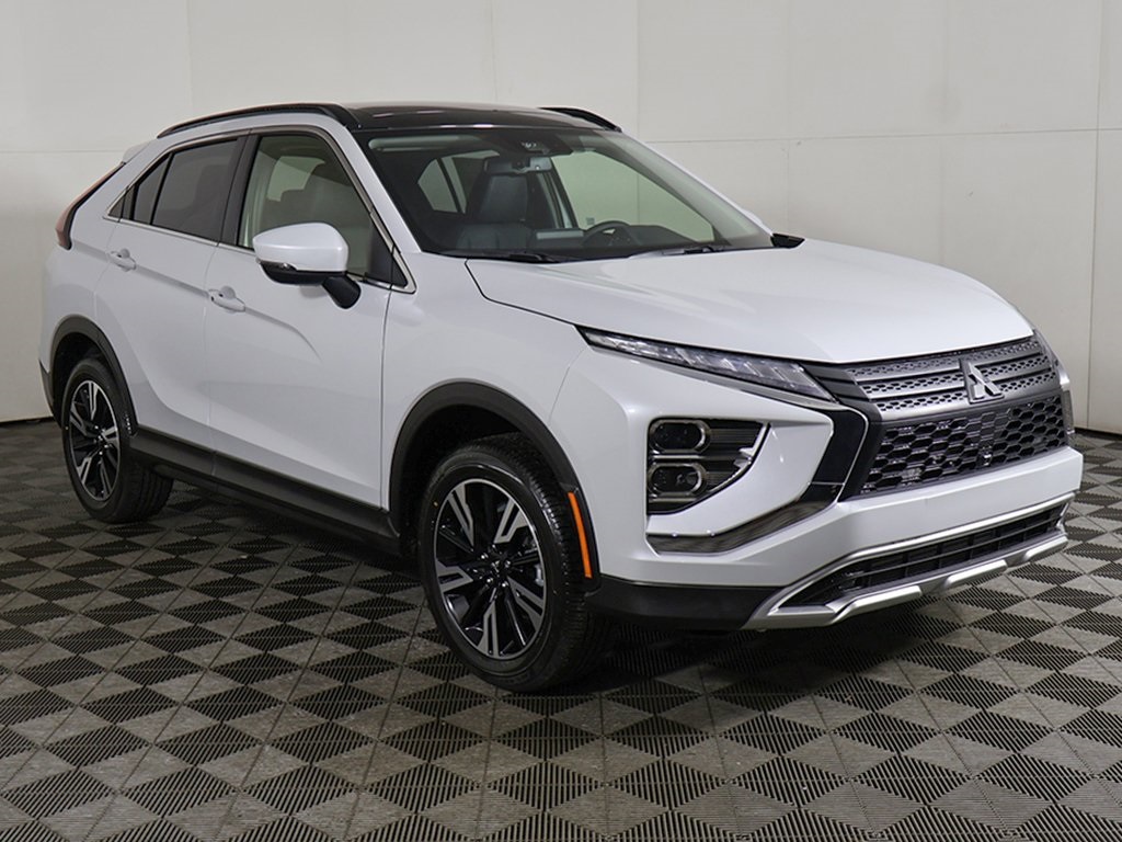 White Diamond 2026 Mitsubishi Eclipse Cross SE 4D Sport Utility 4WD CVT 1.5L I4 DI Turbocharged DOHC 16V LEV3-ULEV125 152hpAndroid Auto & Apple CarPlay, Auto High-beam Headlights, Automatic temperature control, Black Roof Rails, Blind Spot Warning, Exterior Parking Camera Rear, Front dual zone A/C, Front fog lights, Fully automatic headlights, Heated front seats, Panoramic Sunroof Package, Panoramic Sunroof Package (P1), Power driver seat, Power Liftgate, Wheels: 18 x 7J Two-Tone Alloy, 4-Wheel Disc Brakes, 6 Speakers, ABS brakes, Air Conditioning, Alloy wheels, AM/FM radio: SiriusXM, Auto-dimming Rear-View mirror, Brake assist, Bumpers: body-color, Delay-off headlights, Driver door bin, Driver vanity mirror, Dual front impact airbags, Dual front side impact airbags, Electronic Stability Control, Emergency communication system, Four wheel independent suspension, Front anti-roll bar, Front Bucket Seats, Front Center Armrest, Front reading lights, Heated door mirrors, Heated Front Bucket Seats, Illuminated entry, Knee airbag, Low tire pressure warning, Occupant sensing airbag, Outside temperature display, Overhead airbag, Overhead console, Panic alarm, Passenger door bin, Passenger vanity mirror, Power door mirrors, Power steering, Power windows, Radio data system, Radio: AM/FM 8.0 Smartphone-Link Display Audio, Rain sensing wipers, Rear anti-roll bar, Rear seat center armrest, Rear window defroster, Rear window wiper, Remote keyless entry, Security system, Speed control, Speed-sensing steering, Split folding rear seat, Spoiler, Steering wheel mounted audio controls, Tachometer, Telescoping steering wheel, Tilt steering wheel, Traction control, Trip computer, Turn signal indicator mirrors, Variably intermittent wipers, Dual Panel Sunroof, Keyless start, Forward collision warning, Lane departure warning, Adaptive cruise control, Power folding side mirrors, Android Auto & Apple CarPlay, Auto High-beam Headlights, Automatic temperature control, Black Roof Rails, Blind Spot Warning, Exterior Parking Camera Rear, Front dual zone A/C, Front fog lights, Fully automatic headlights, Heated front seats, Panoramic Sunroof Package, Panoramic Sunroof Package (P1), Power driver seat, Power Liftgate, Wheels: 18 x 7J Two-Tone Alloy.