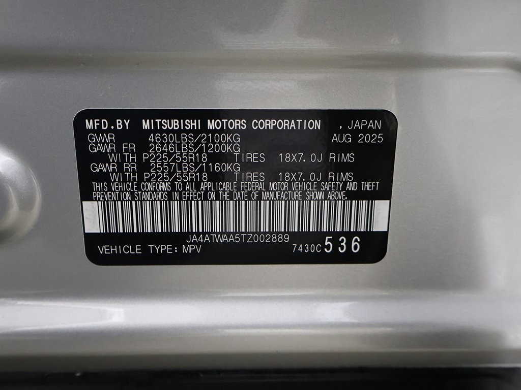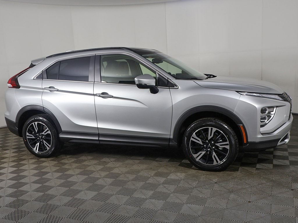 Alloy Silver Metallic 2026 Mitsubishi Eclipse Cross SE 4WD CVT 1.5L I4 DI Turbocharged DOHC 16V LEV3-ULEV125 152hpAccessory Eclipse Cross Scuff Plates, Accessory Metal Cargo Scuff Plates, Android Auto & Apple CarPlay, Auto High-beam Headlights, Automatic temperature control, Black Roof Rails, Blind Spot Warning, Exterior Parking Camera Rear, Front dual zone A/C, Front fog lights, Fully automatic headlights, Heated front seats, Panoramic Sunroof Package, Panoramic Sunroof Package (P1), Power driver seat, Power Liftgate, Power Panoramic Sunroof, Wheels: 18 x 7J Two-Tone Alloy, 4-Wheel Disc Brakes, 6 Speakers, ABS brakes, Air Conditioning, Alloy wheels, AM/FM radio: SiriusXM, Auto-dimming Rear-View mirror w/HomeLink, Brake assist, Bumpers: body-color, Delay-off headlights, Driver door bin, Driver vanity mirror, Dual front impact airbags, Dual front side impact airbags, Electronic Stability Control, Emergency communication system, Four wheel independent suspension, Front anti-roll bar, Front Bucket Seats, Front Center Armrest, Front reading lights, Heated door mirrors, Heated Front Bucket Seats, Illuminated entry, Knee airbag, Low tire pressure warning, Occupant sensing airbag, Outside temperature display, Overhead airbag, Overhead console, Panic alarm, Passenger door bin, Passenger vanity mirror, Power door mirrors, Power steering, Power windows, Radio data system, Radio: AM/FM 8.0 Smartphone-Link Display Audio, Rain sensing wipers, Rear anti-roll bar, Rear seat center armrest, Rear window defroster, Rear window wiper, Remote keyless entry, Security system, Speed control, Speed-sensing steering, Split folding rear seat, Spoiler, Steering wheel mounted audio controls, Tachometer, Telescoping steering wheel, Tilt steering wheel, Traction control, Trip computer, Turn signal indicator mirrors, Variably intermittent wipers, Keyless start, Forward collision warning, Adaptive cruise control, Lane departure warning, Power folding side mirrors, Accessory Eclipse Cross Scuff Plates, Accessory Metal Cargo Scuff Plates, Android Auto & Apple CarPlay, Auto High-beam Headlights, Automatic temperature control, Black Roof Rails, Blind Spot Warning, Exterior Parking Camera Rear, Front dual zone A/C, Front fog lights, Fully automatic headlights, Heated front seats, Panoramic Sunroof Package, Panoramic Sunroof Package (P1), Power driver seat, Power Liftgate, Power Panoramic Sunroof, Wheels: 18 x 7J Two-Tone Alloy.