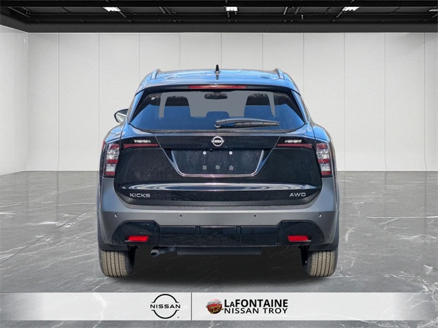 Super Black 2026 Nissan Kicks SV AWD CVT with Xtronic 2.0L DOHC Kicks SV, 4D Sport Utility, 2.0L DOHC, CVT with Xtronic, AWD, Super Black, Charcoal Cloth.27/34 City/Highway MPG Price includes: $1000 - Nissan Customer Cash. Exp. 02/02/2026 $500 - Nissan MWR MY26 Kicks Bonus Cash - January . Exp. 02/02/2026