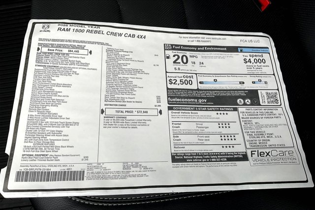 Hydro Blue Pearlcoat 2026 Ram 1500 Rebel 4WD 8-Speed Automatic 3.0L I6 Price includes: $3500 - 2026 National Retail Consumer Cash . Exp. 01/05/2026