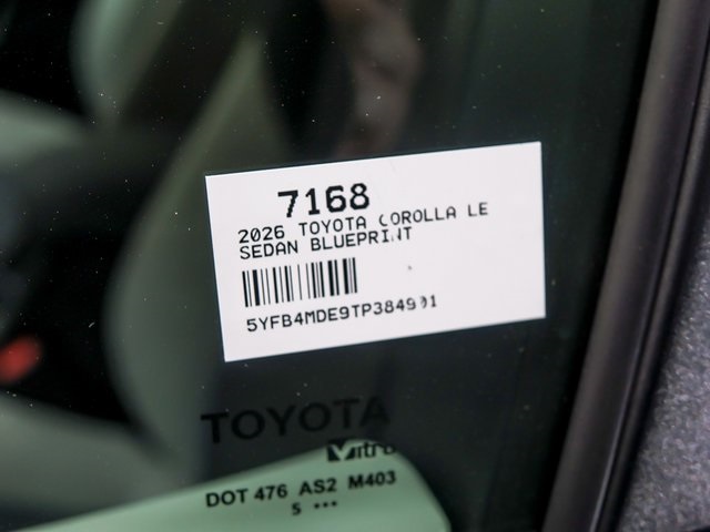 NEW ARRIVAL! BEAUTIFUL BLUEPRINT ON LIGHT GRAY COLOR COMBO! PREMIUM PAINT! LE PREMIUM PACKAGE! SMART KEY SYSTEM ON FRONT DOORS AND TRUNK WITH PUSH BUTTON START! REMOTE KEYLESS ENTRY SYSTEM WITH LOCK, PANIC AND TRUNK RELEASE FUNCTIONS! 16 INCH ALLOY WHEELS! WIRELESS CHARGING! TRUNK LED LIGHT BULB! ALL WEATHER FLOOR LINER PACKAGE! BLACKOUT EMBLEM OVERLAYS! 7 INCH DIGITAL CLUSTER! 8 INCH MULTIMEDIA TOUCHSCREEN! TWO FRONT USB PORTS! 60/40 SPLIT FOLD DOWN REAR SEAT! LED HEADLIGHTS! BLIND SPOT MONITOR WITH REAR CROSS TRAFFIC ALERT! PRE COLLISION SYSTEM WITH PEDESTRIAN DETECTION! LANE TRACING ASSIST! FULL SPEED RANGE DYNAMIC CRUISE CONTROL! LANE DEPARTURE WITH STEERING ASSIST! AUTOMATIC HIGH BEAMS! ROAD SIGN ASSIST! LOW 4.99% APR FOR 60 MONTHS AND 4.99% FOR 72 MONTHS SPECIAL FINANCING THROUGH TOYOTA FINANCIAL FOR QUALIFIED TIER 1+ CREDIT! OUT OF STATE? NO PROBLEM!! WE SHIP NATIONWIDE!! AGGRESSIVE OFFER FOR YOUR TRADE IN VEHICLE!! NO CREDIT OR BAD CREDIT NO PROBLEM!! SI HABLA ESPANOL!! STOP DREAMING AND START DRIVING TODAY!! Factory MSRP: $25,528 Dealer Discount of $1,224 off MSRPRecent Arrival! Blueprint 2026 Toyota Corolla 4D Sedan LE 2.0L I4 PDI DOHC 16V LEV3-SULEV30 169hp 32/41 City/Highway MPG CVT FWDAll prices are subject to tax, tittle, lic, and Doc Fee of $367.70.