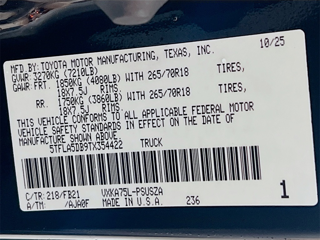 2026 Toyota Tundra SR5 10-Speed Electronically Controlled Automatic Transmission, 18 TRD Off-Road Alloy Wheels, 3.4L V6 i-FORCE (389 HP) Engine, 4-Way Manual Front Seats, All-Terrain Tires, Center Console Safe, Front and Rear Mud Guards, Lane Change Assist, Midnight Black Metallic, Multi-Terrain Back Monitor, TRD Heated Steering Wheel, TRD Performance Air Filter, TRD Rally Package.Prices and payments (including the amount down payment) do not include tax, titles, tags, $250 documentation fee, emissions testing charges, or other fees required by law or lending organizations. There is a $0 security deposit fee. Please contact the Dealership for latest pricing and monthly payment. Published price subject to change without notice to correct errors or omissions or in the event of inventory fluctuations. While every effort has been made to ensure display of accurate data, the vehicle listings within this web site may not reflect all accurate vehicle items. The vehicle photo displayed may be an example only. Vehicle Photos may not match exact vehicle. Please confirm vehicle price with Dealership. **Dealership Starting Price is representative of dealership price after adjustments for accessories / installed options / granted available for all discounts, and before the application of OEM manufacturer offers and incentives. Price includes: $3000 - TMS Customer Cash . Exp. 01/05/2026