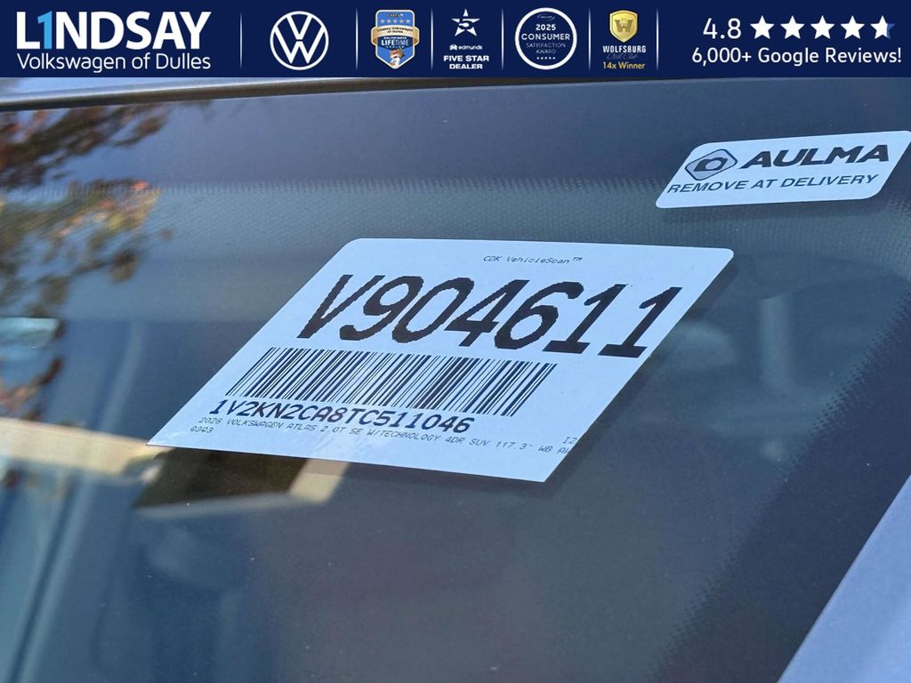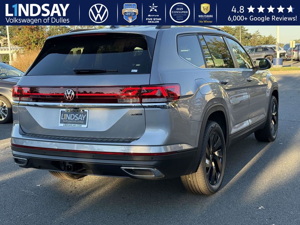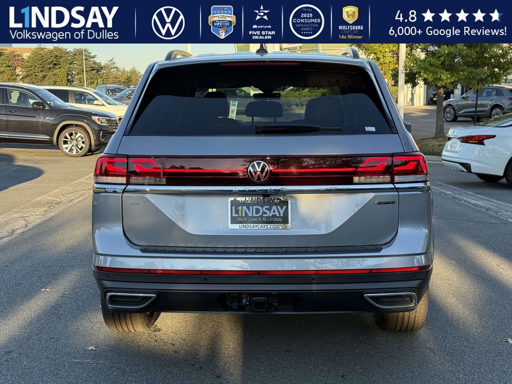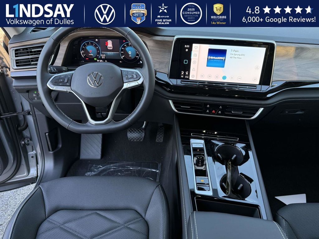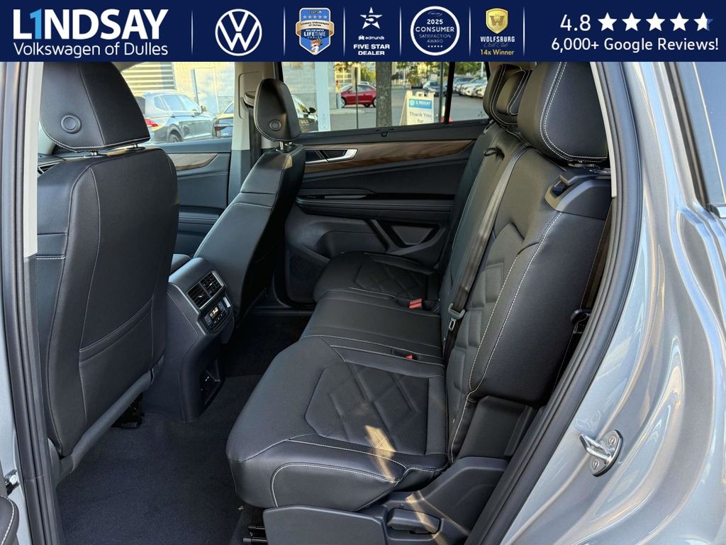 silver mist metallic 2026 Volkswagen Atlas SE w/Technology AWD 8-Speed Automatic with Tiptronic 2.0L TSI VOLKSWAGEN DIGITAL COCKPIT INSTRUMENT DISPLAY!, IQ.DRIVE PACKAGE - TRAVEL ASSIST (SEMI-AUTOMATED DRIVING ASSISTANCE), ADAPTIVE CRUISE CONTROL, LANE ASSIST, EMERGENCY ASSIST, FORWARD COLLISION WARNING & AUTONOMOUS EMERGENCY BRAKING, BLIND SPOT MONITOR W/ REAR TRAFFIC ALERT!, 3rd row seats: split-bench, Active Cruise Control, AM/FM radio: SiriusXM with 360L, Auto High-beam Headlights, Auto-dimming Rear-View mirror, Automatic temperature control, Black Bumperdillo Rear Bumper Protection Plate, Black Wheel Package, Electronic Stability Control, Exterior Parking Camera Rear, Four wheel independent suspension, Front dual zone A/C, Front fog lights, Fully automatic headlights, Heated & Actively Ventilated Front Bucket Seats, Heated door mirrors, Heated steering wheel, Illuminated entry, Panoramic Sunroof Package, Perforated V-Tex Leatherette Seating Surfaces, Power driver seat, Power Liftgate, Power Tilting & Sliding Panoramic Sunroof, Radio: MIB3 Composition Media, Rain sensing wipers, Rear air conditioning, Remote keyless entry, Split folding rear seat, Steering wheel mounted audio controls, Traction control, Turn signal indicator mirrors, Variably intermittent wipers, Volkswagen Logo Puddle Lights, Wheels: 20 Multi-Spoke Black Painted Alloy. 19/26 City/Highway MPG