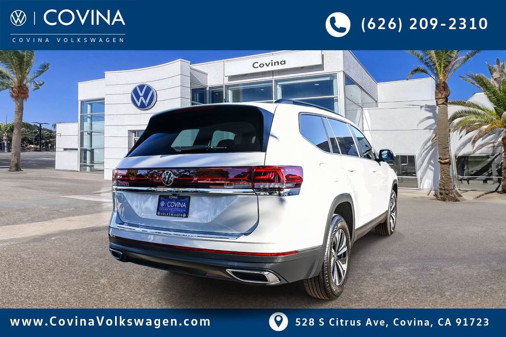 2026 Volkswagen Atlas 2.0T SE White $2,896 off MSRP! 20/26 City/Highway MPGThis vehicle includes: 3rd row seats: split-bench, 4-Wheel Disc Brakes, 6 Speakers, ABS brakes, Air Conditioning, Alloy wheels, AM/FM radio: SiriusXM with 360L, Auto High-beam Headlights, Auto-dimming Rear-View mirror, Automatic temperature control, Brake assist, Bumpers: body-color, Chrome Bumperdillo Rear Bumper Protection Plate, Delay-off headlights, Driver door bin, Driver vanity mirror, Dual front impact airbags, Dual front side impact airbags, Electronic Stability Control, Emergency communication system: VW Car-Net Safe & Secure 5-year, Exterior Parking Camera Rear, First Aid Kit, Four wheel independent suspension, Front anti-roll bar, Front Bucket Seats, Front Center Armrest, Front dual zone A/C, Front fog lights, Front reading lights, Fully automatic headlights, Heated door mirrors, Heated front seats, Heated steering wheel, Illuminated entry, Low tire pressure warning, Occupant sensing airbag, Outside temperature display, Overhead airbag, Overhead console, Panic alarm, Passenger door bin, Passenger vanity mirror, Perforated V-Tex Leatherette Seating Surfaces, Power door mirrors, Power driver seat, Power steering, Power windows, Radio data system, Radio: MIB3 Composition Media, Rain sensing wipers, Rear air conditioning, Rear anti-roll bar, Rear reading lights, Rear seat center armrest, Rear window defroster, Rear window wiper, Remote keyless entry, Roadside Assistance Kit, Security system, Speed control, Speed-sensing steering, Split folding rear seat, Spoiler, Steering wheel mounted audio controls, Tachometer, Telescoping steering wheel, Tilt steering wheel, Traction control, Trip computer, Turn signal indicator mirrors, Variably intermittent wipers, Ventilated front seats, VW Care, and Wheels: 18 2-Tone Machined Alloy.Thank You for considering Covina Volkswagen for your automotive needs. Please contact us now at 626-967-6325 or on the web at www.covinavolkswagen.com. Price includes: $1000 - Customer Bonus. Exp. 04/30/2026